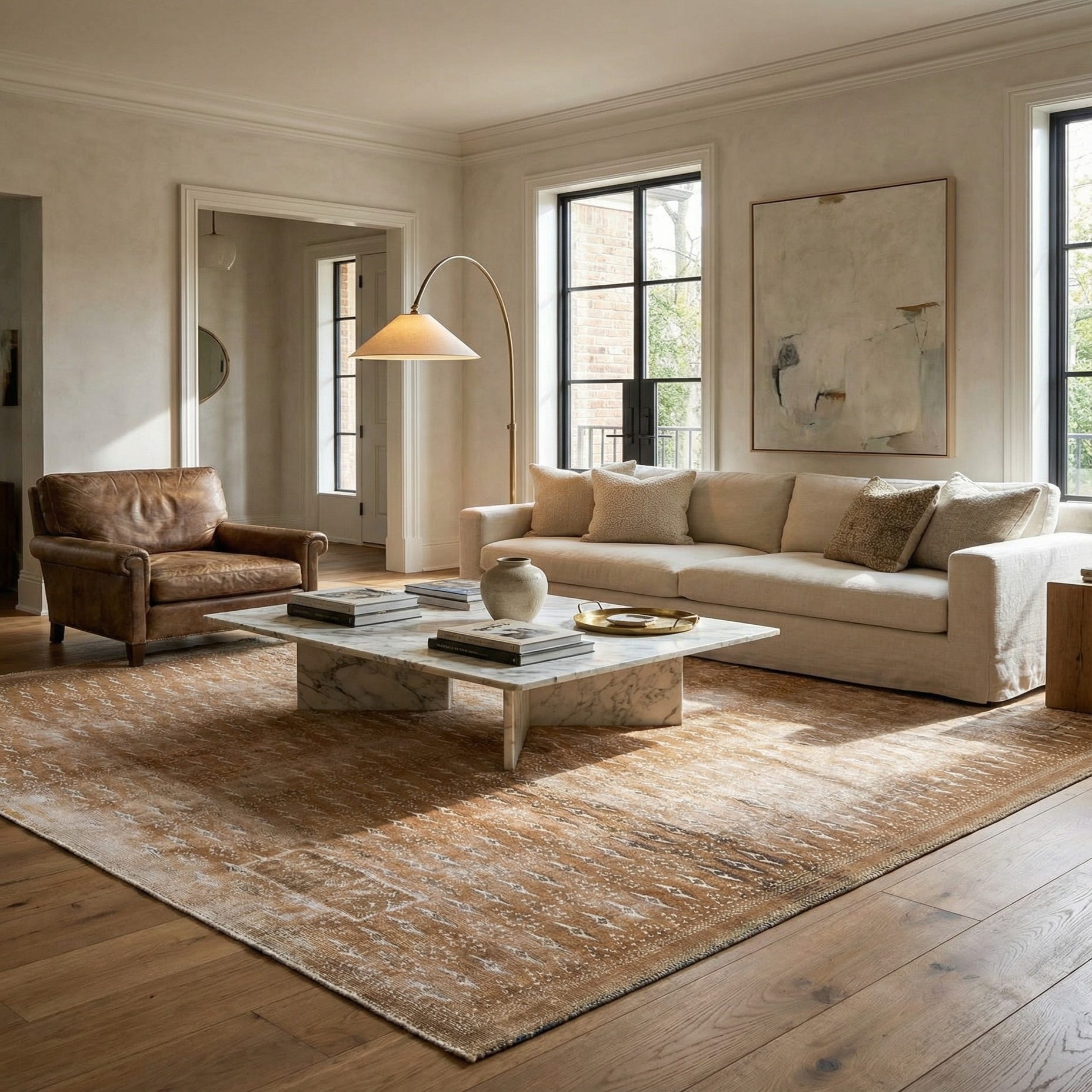This rug's subtle color palette and classic pattern allow for versatile use in various interior design scenarios. It is well-suited for a living room or dining area, complementing wooden furniture and neutral decor. Alternatively, its understated elegance could also serve as a sophisticated grounding element in a refined office or study. This rug has the power to harmonize with both contemporary and traditional interiors, making it a flexible choice for an array of home styles.