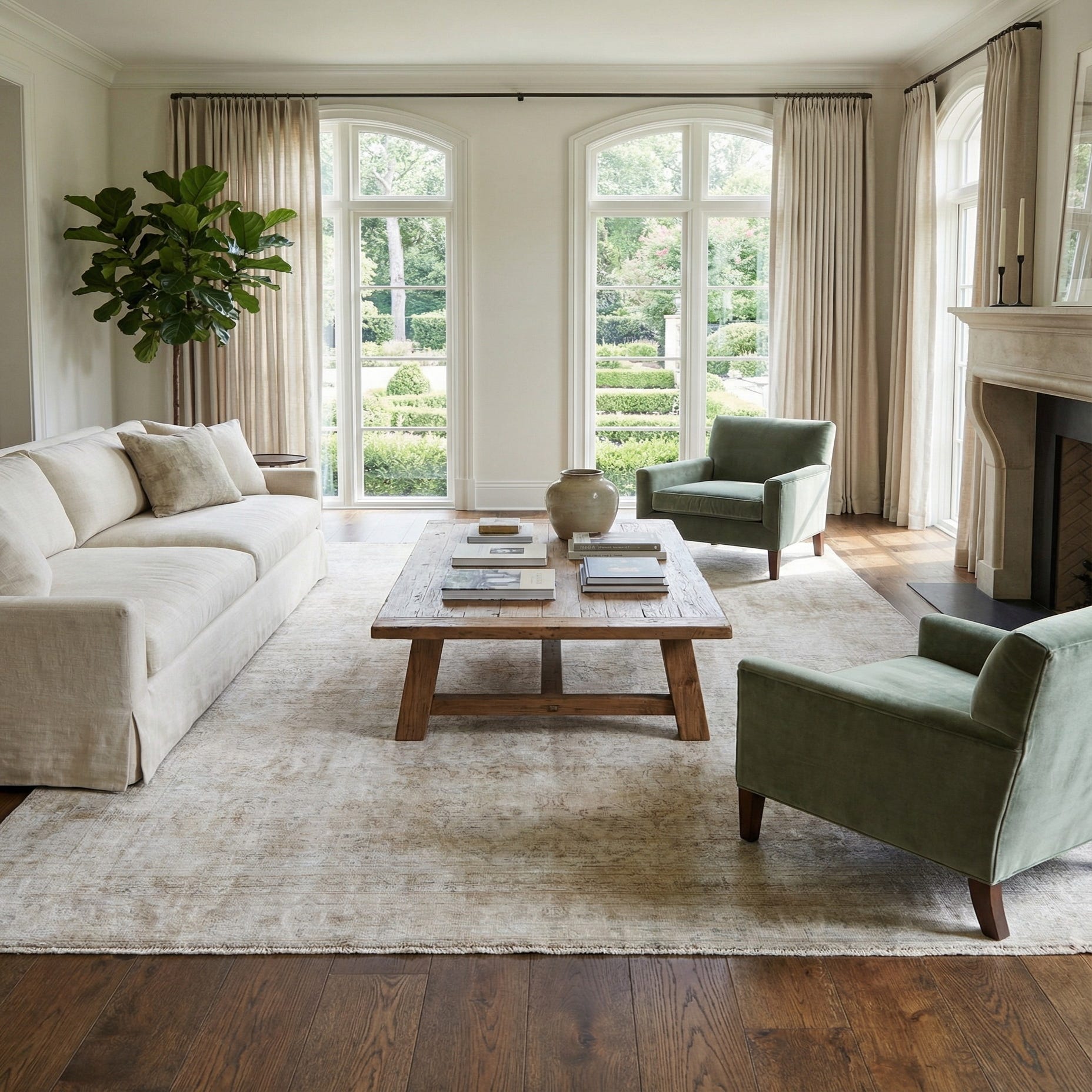 Ideal for interiors that favor a blend of contemporary and traditional elements, this rug could serve as a balanced backdrop for both minimalist modern furnishings as well as more opulent, classic pieces. The neutral hues pair well with natural materials such as wood and leather, and the rug can help to soften spaces that incorporate harder surfaces like stone or metal.