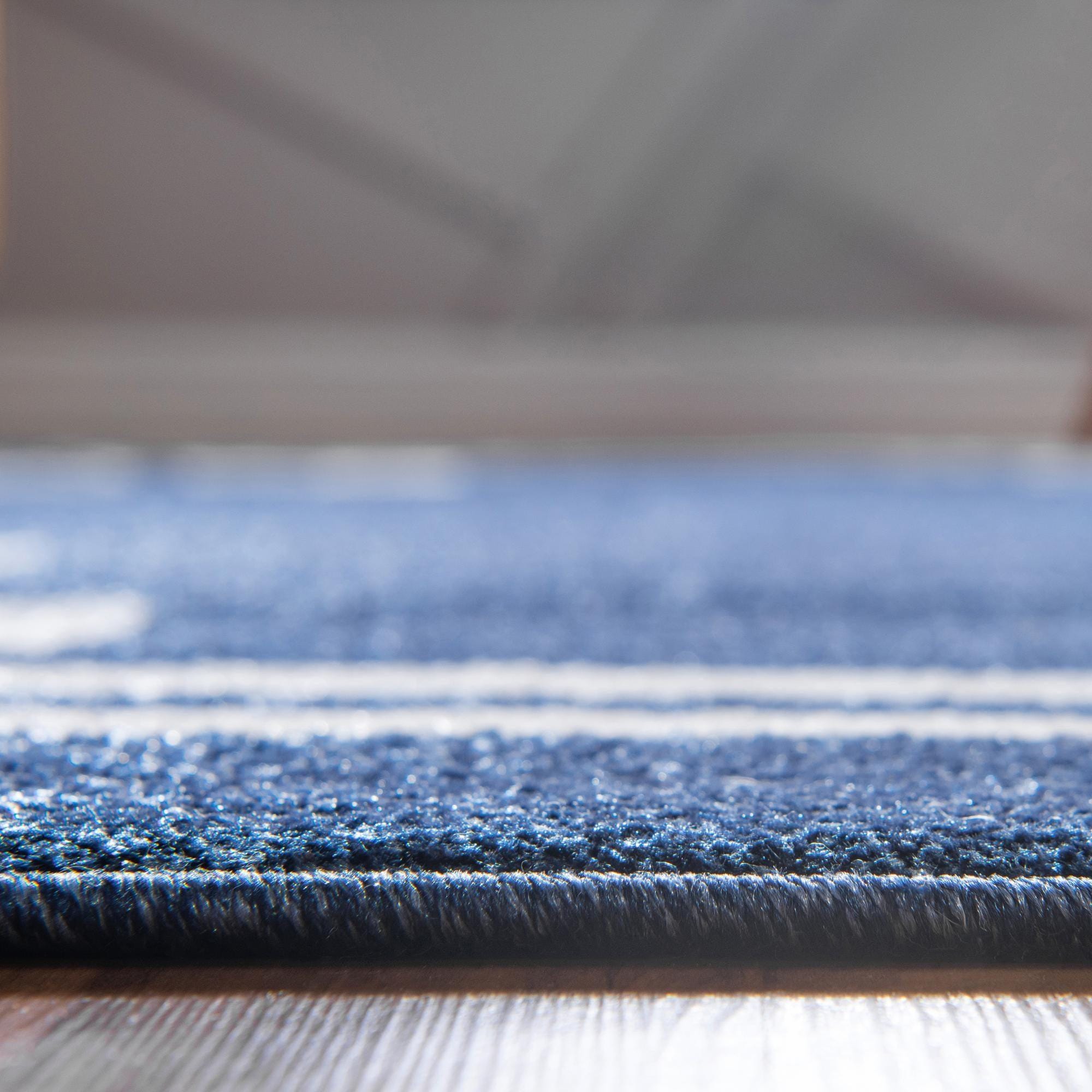 This runner works well in hallways, entryways, kitchens, or alongside a bed where a long, narrow rug is needed. It complements coastal, transitional, or modern-classic schemes—try it over light wood or pale tile to let the dark blue stand out, or coordinate with ivory textiles and warm metal accents for a refined contrast. The sturdy polypropylene construction makes it well suited to busy areas of the home.