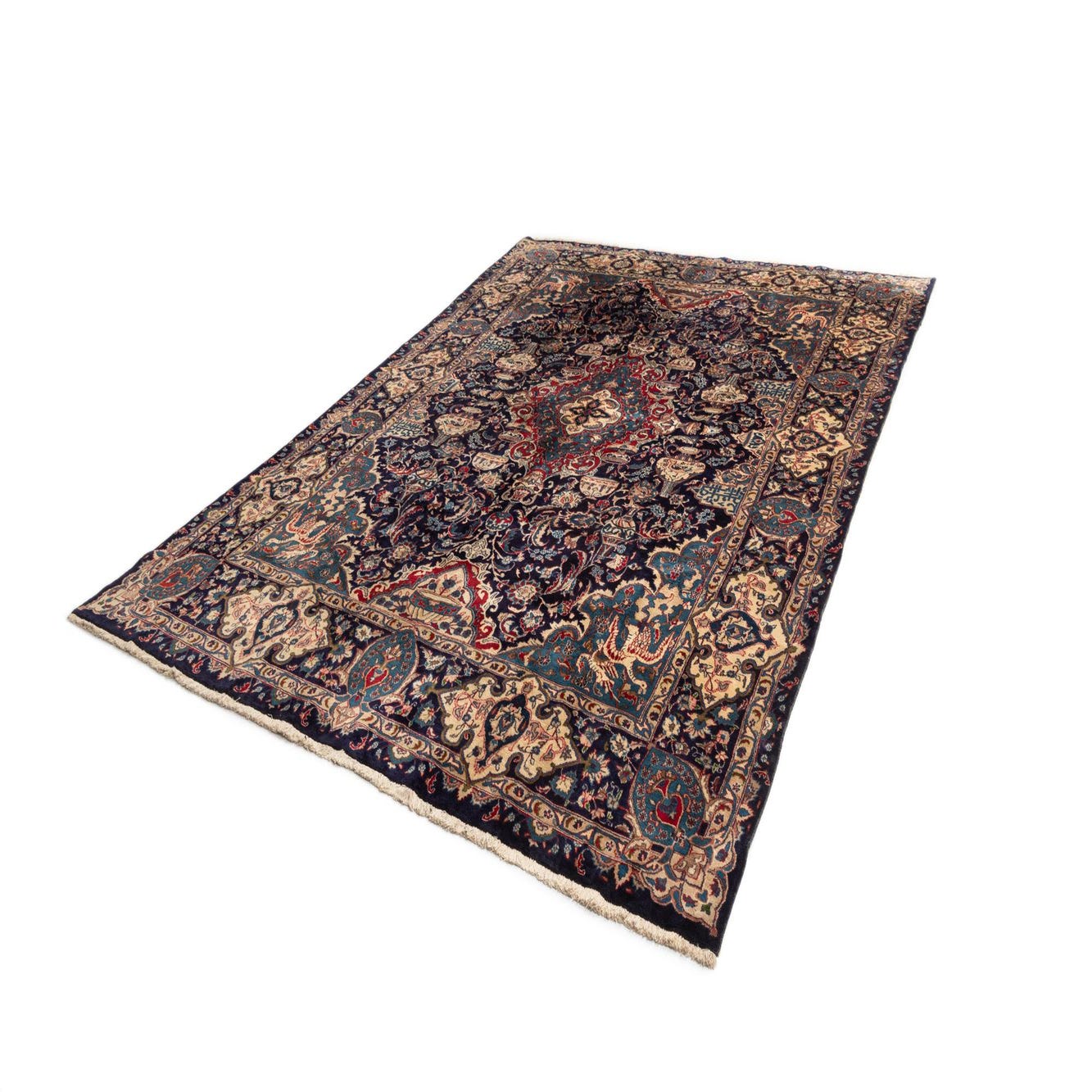 A large 10x12 rectangular Persian wool rug featuring an intricate traditional design in deep blues, red, and cream.