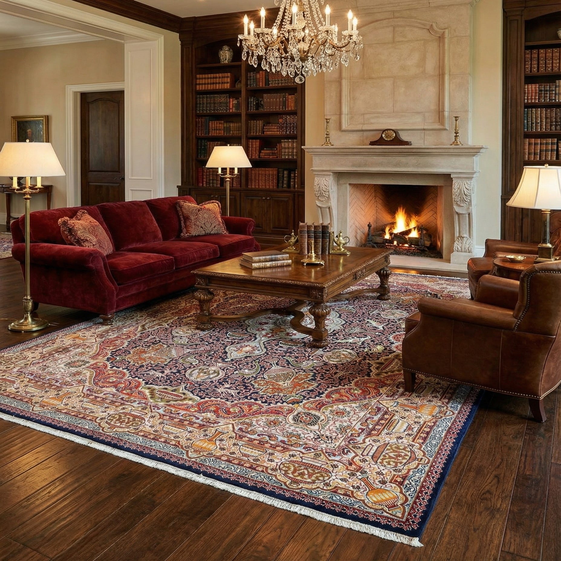 This Kashmar rug could serve as a stunning centerpiece in a traditional setting, or provide an element of contrast in a more modern space. Its ample dimensions make it an ideal choice for large living areas where it can anchor furniture and create a cohesive look.