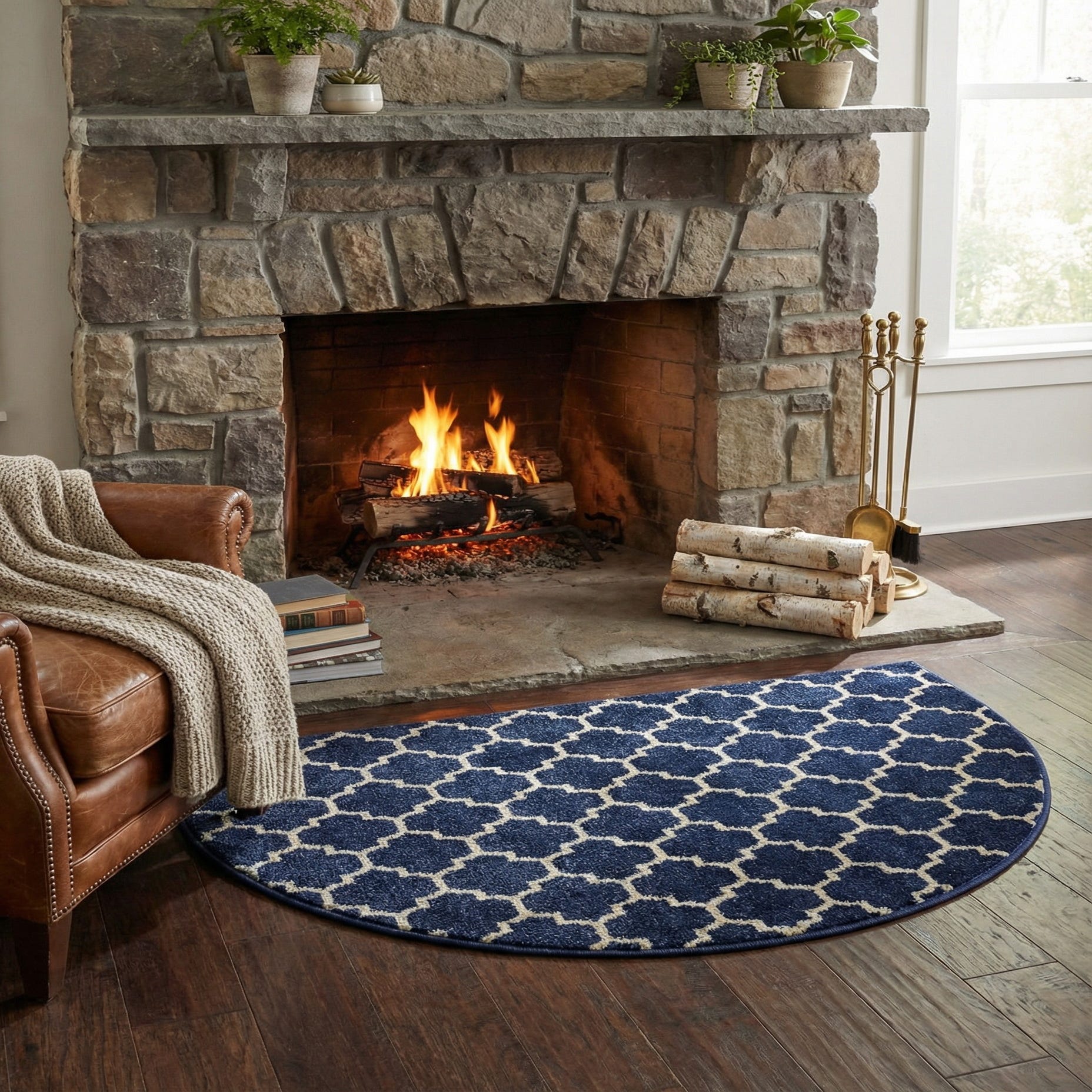 Primary color is Dark Blue. Colors in this rug include: Dark Blue, Ivory.