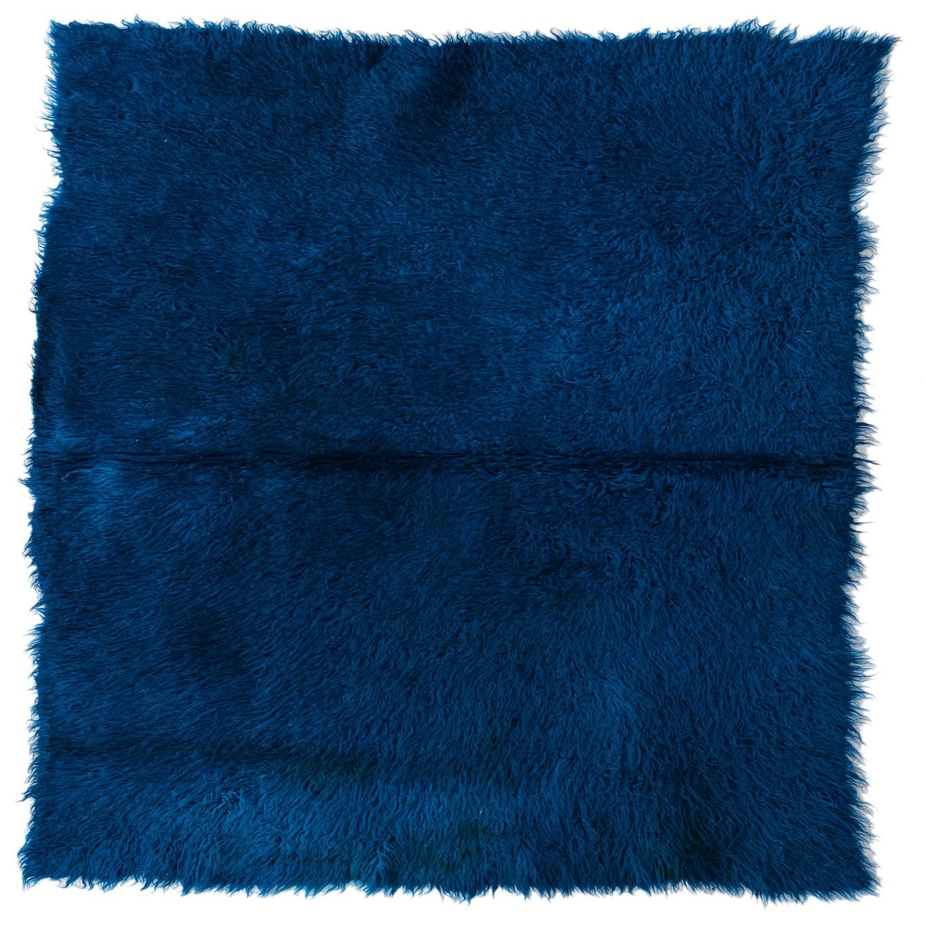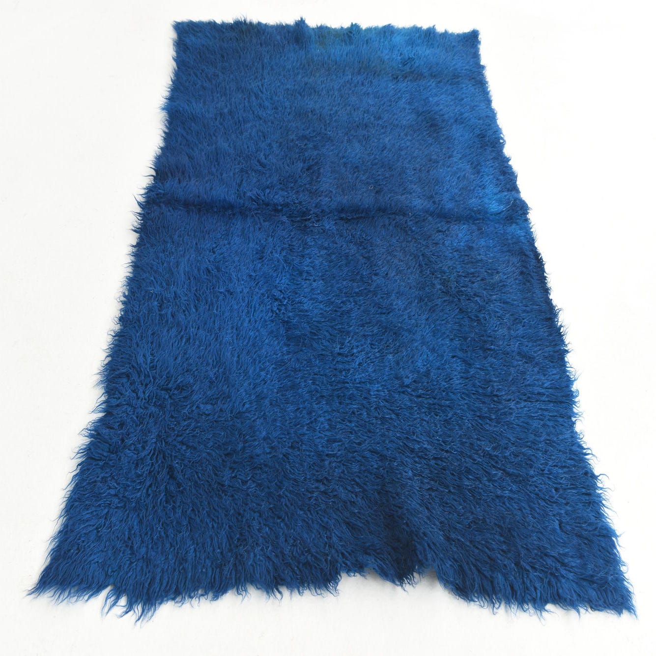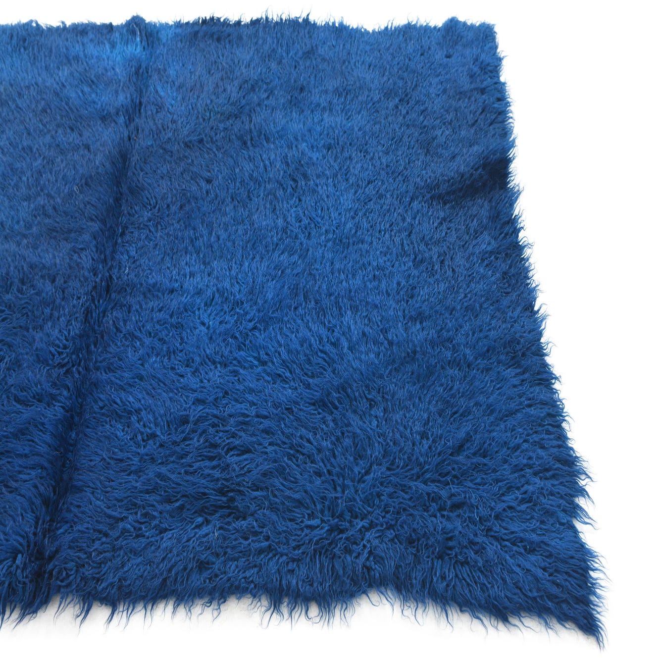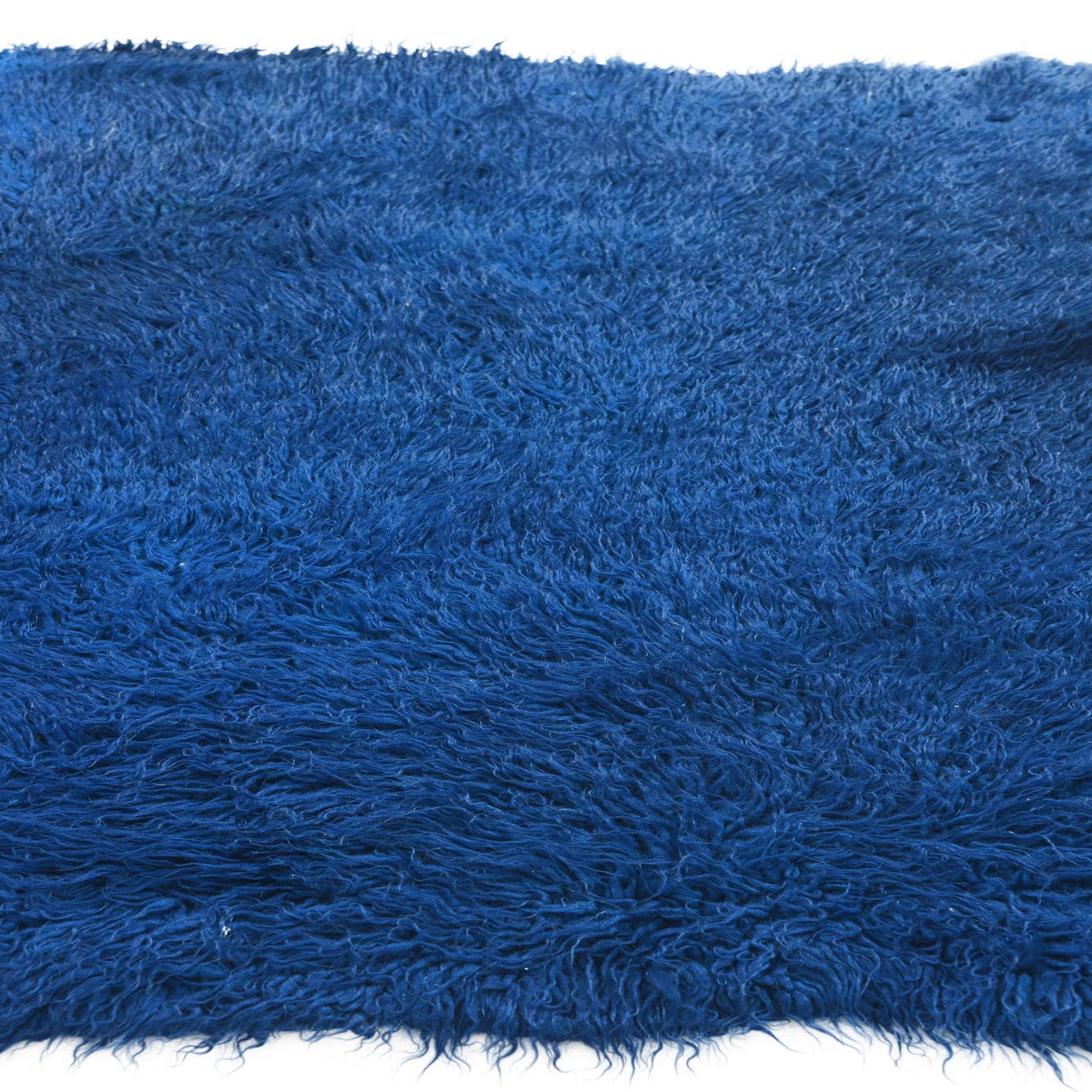 A rectangular 3x5 blue shag area rug made of wool, featuring a plush, shaggy texture.