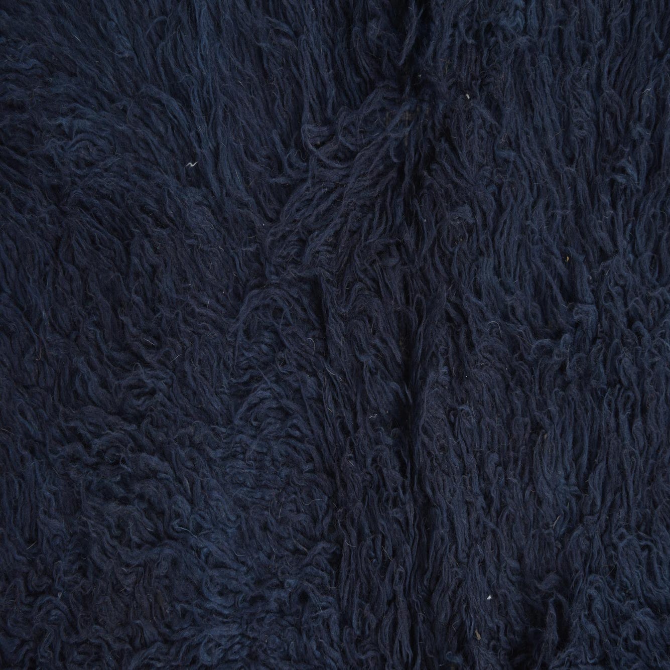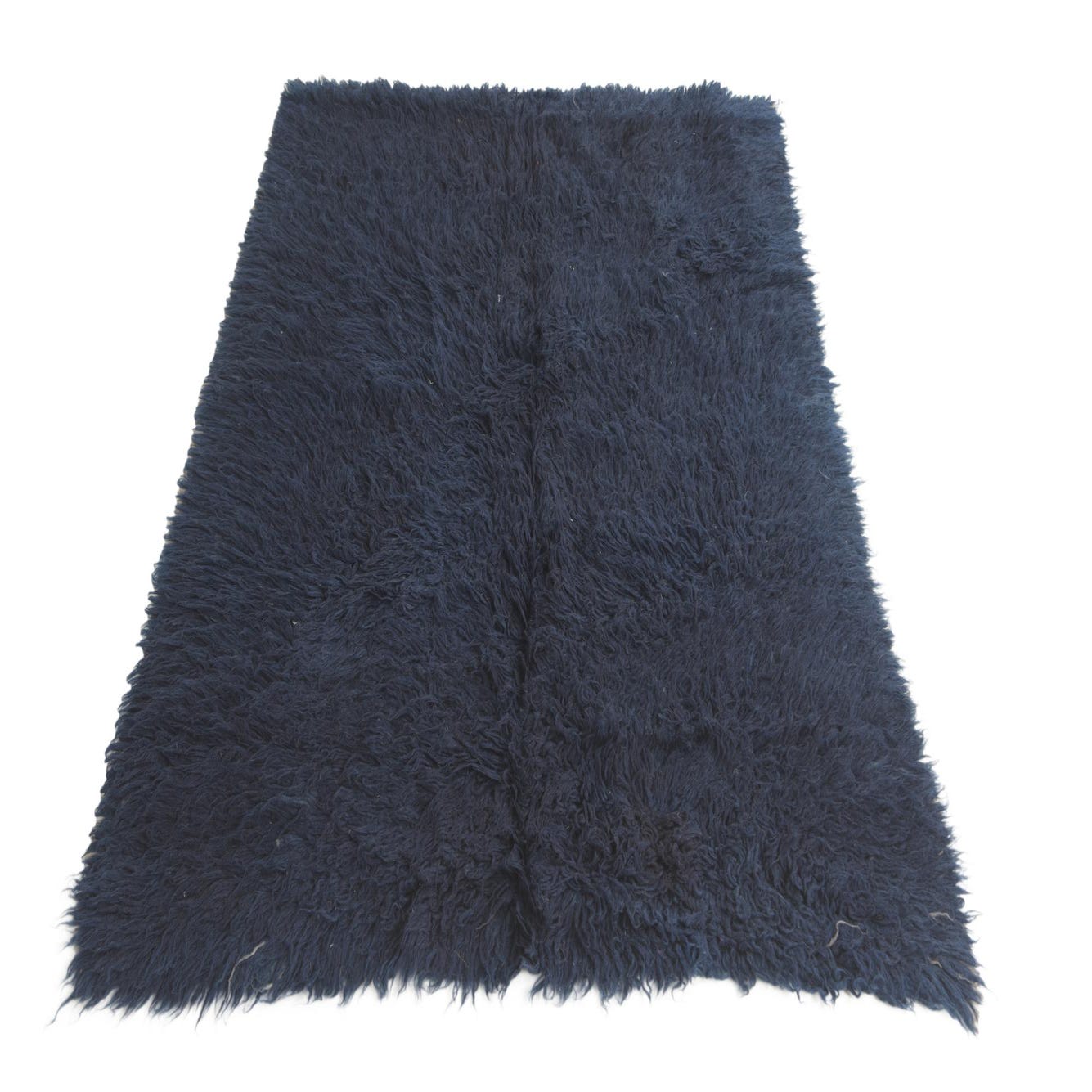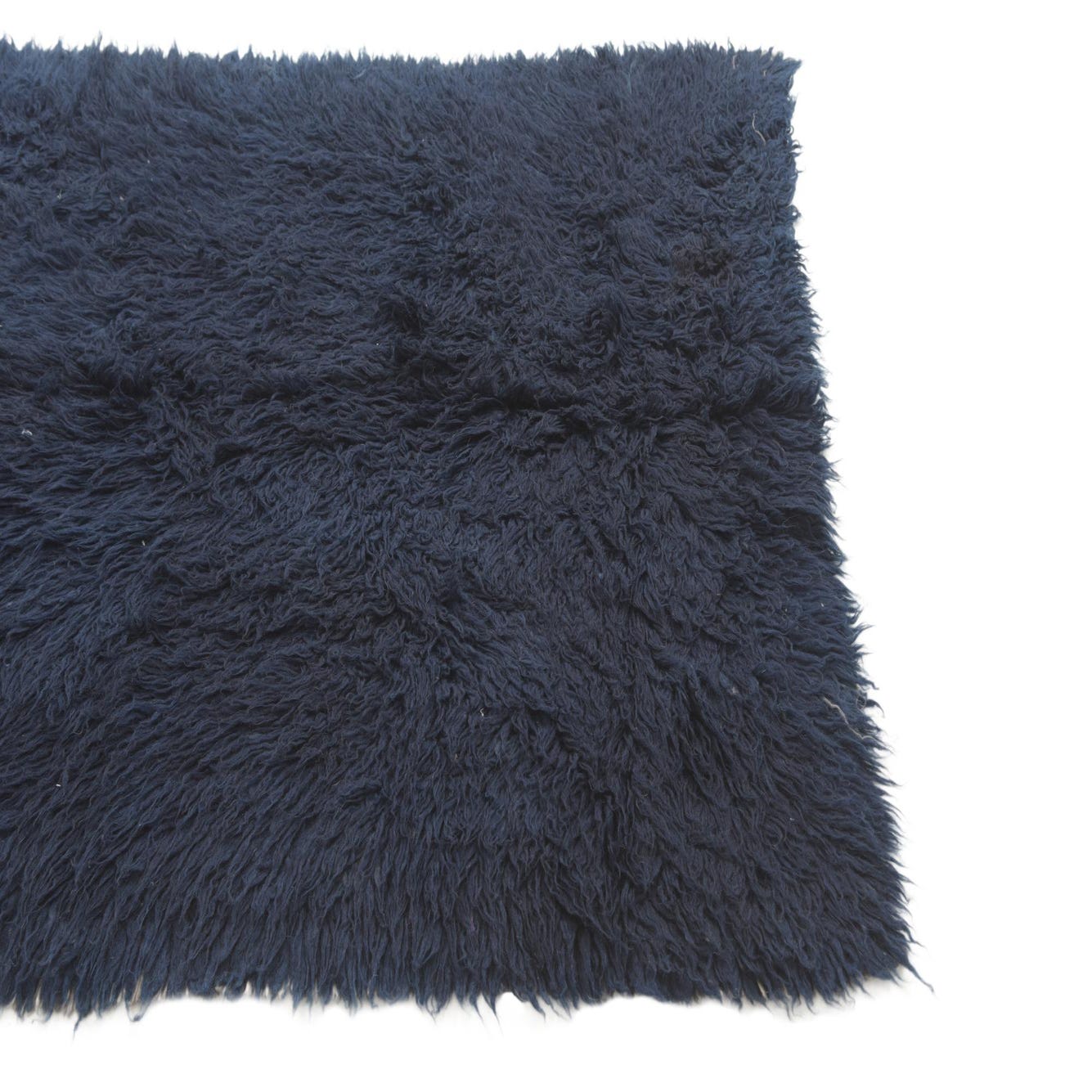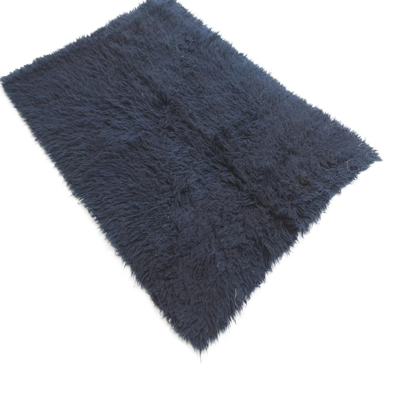 A rectangular 4x6 navy blue shag rug with a thick, plush pile, perfect for a cozy living room.