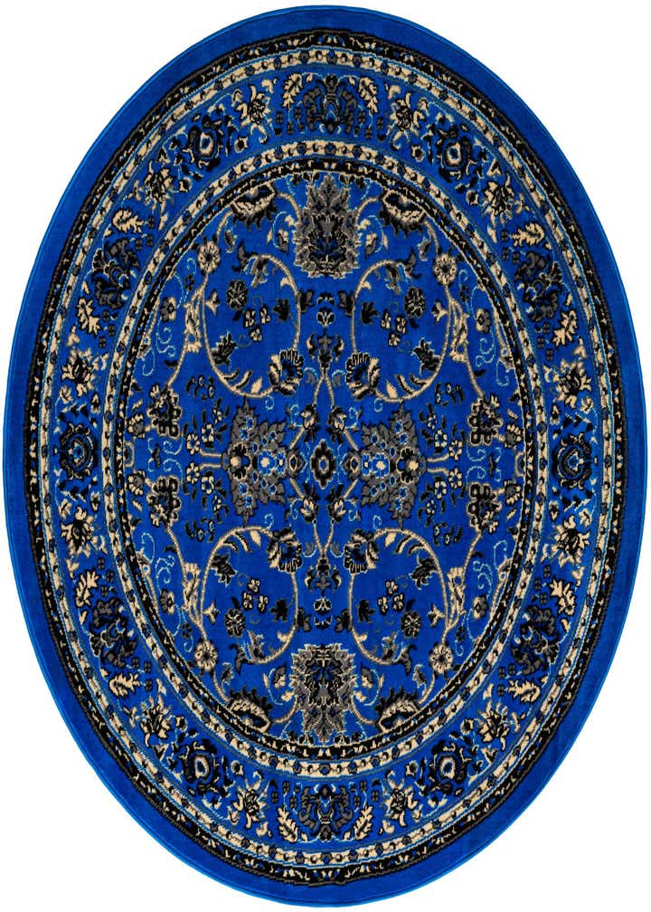 Primary color is Dark Blue. Colors in this rug include: Dark Blue, Black, Cream, Gray.