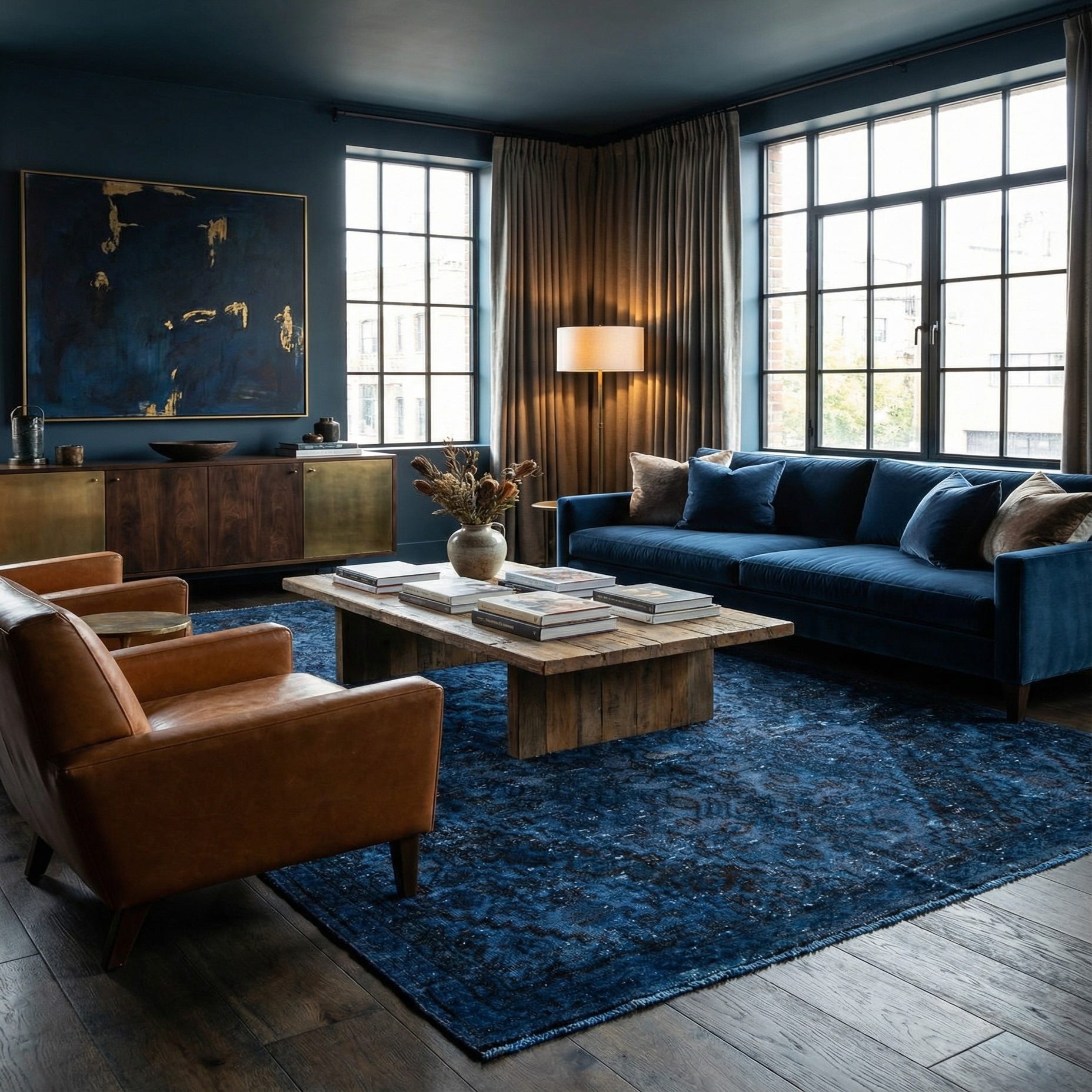 Primary color is Dark Blue. Colors in this rug include: Dark Blue, Navy Blue.