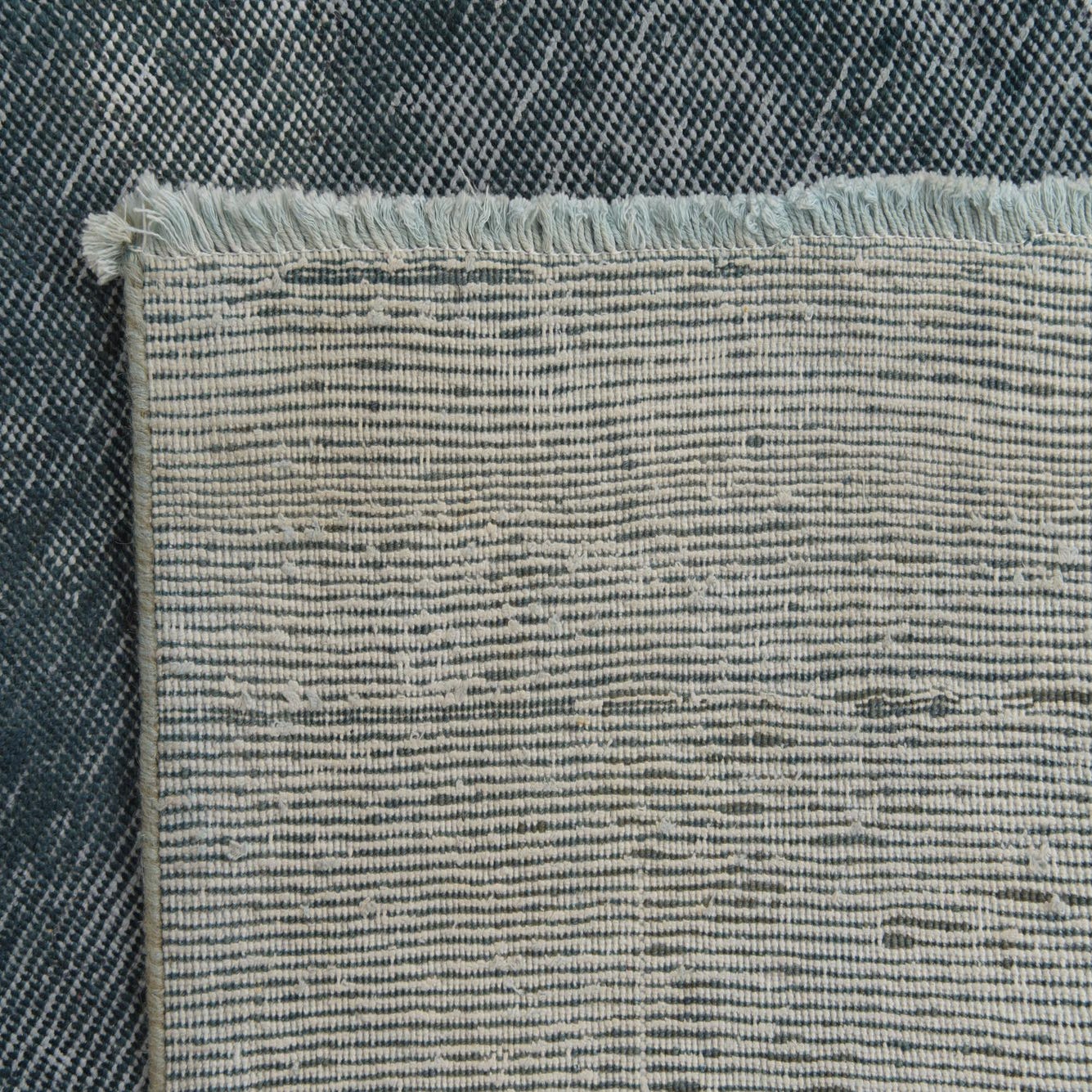 The texture presents a unique interplay of plushness and dense knotting, characteristic of quality hand-knotted rugs. This rug also features fringe detailing that adds a touch of traditional charm.