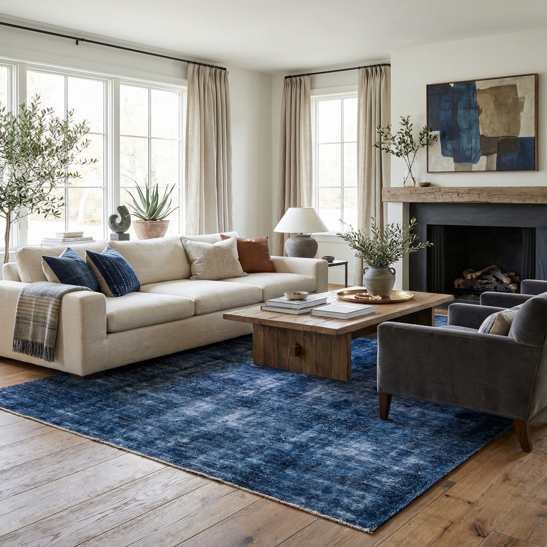 Primary color is Dark Blue. Colors in this rug include: Dark Blue, Black.