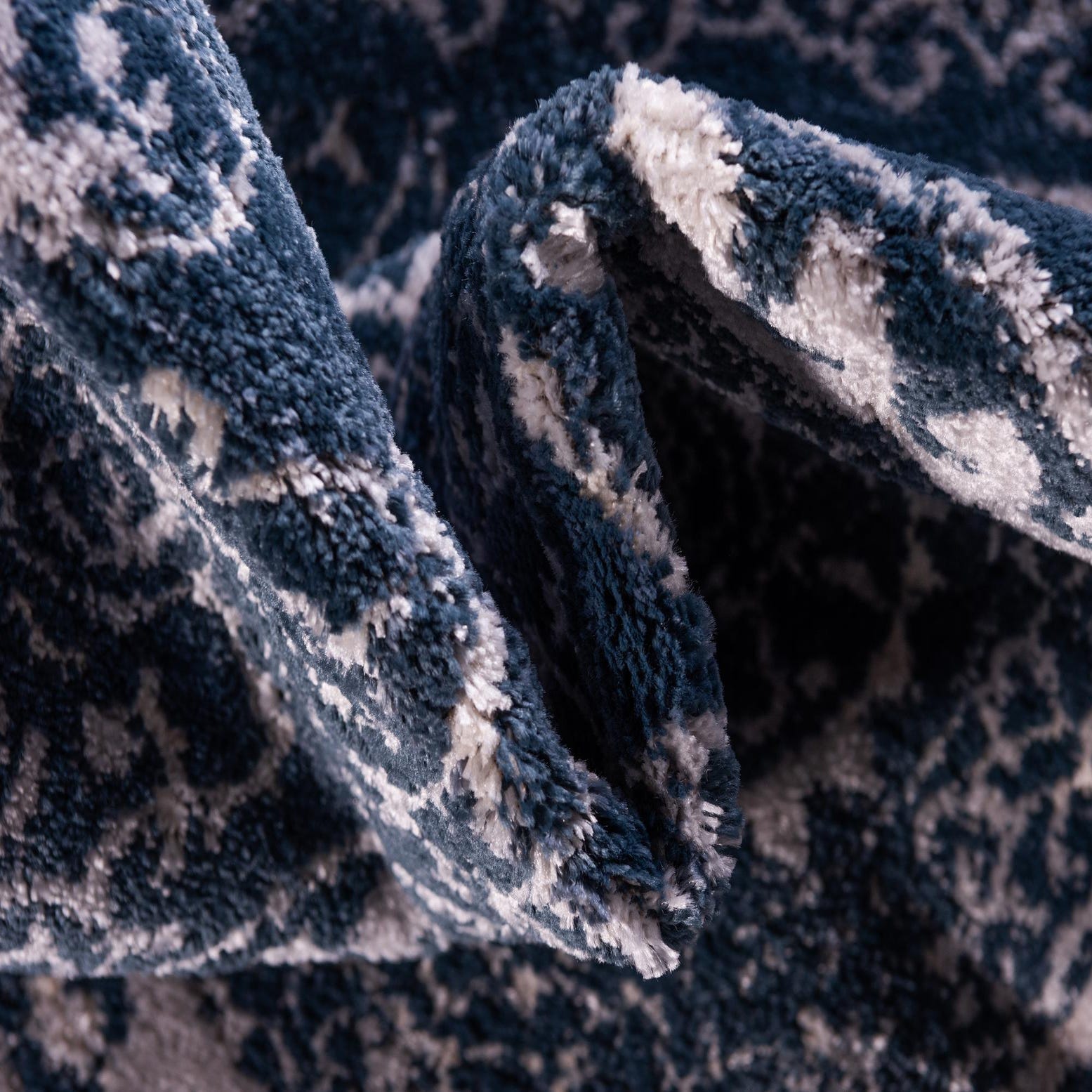 Primary color is Dark Blue. Colors in this rug include: Dark Blue, Ivory, Silver.