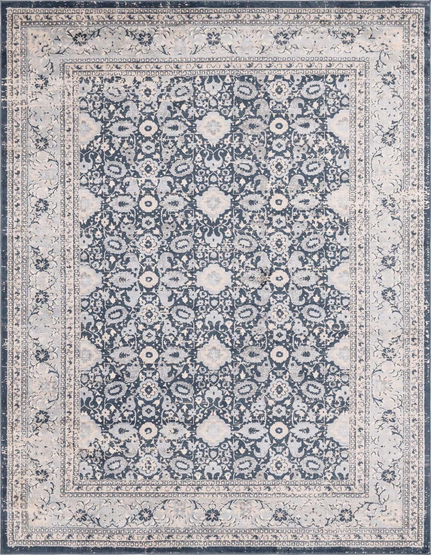 Primary color is Dark Blue. Colors in this rug include: Dark Blue, Beige, Gray, Ivory.