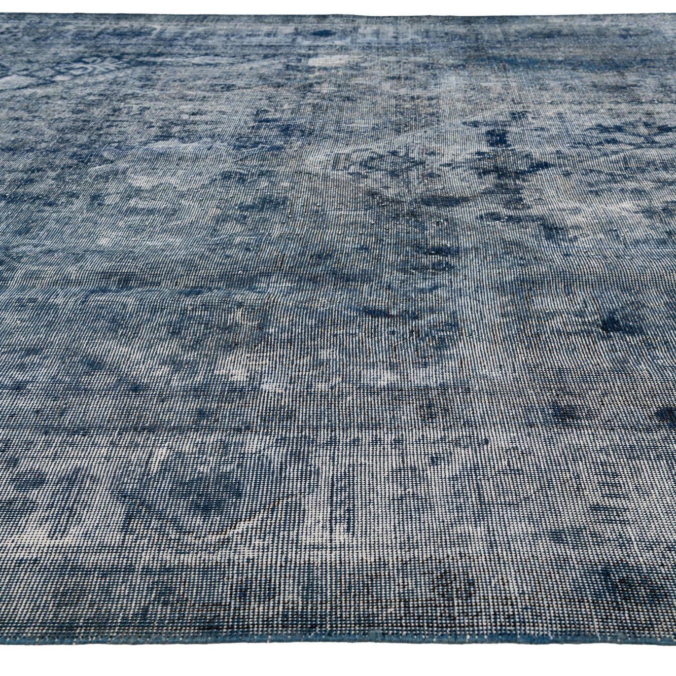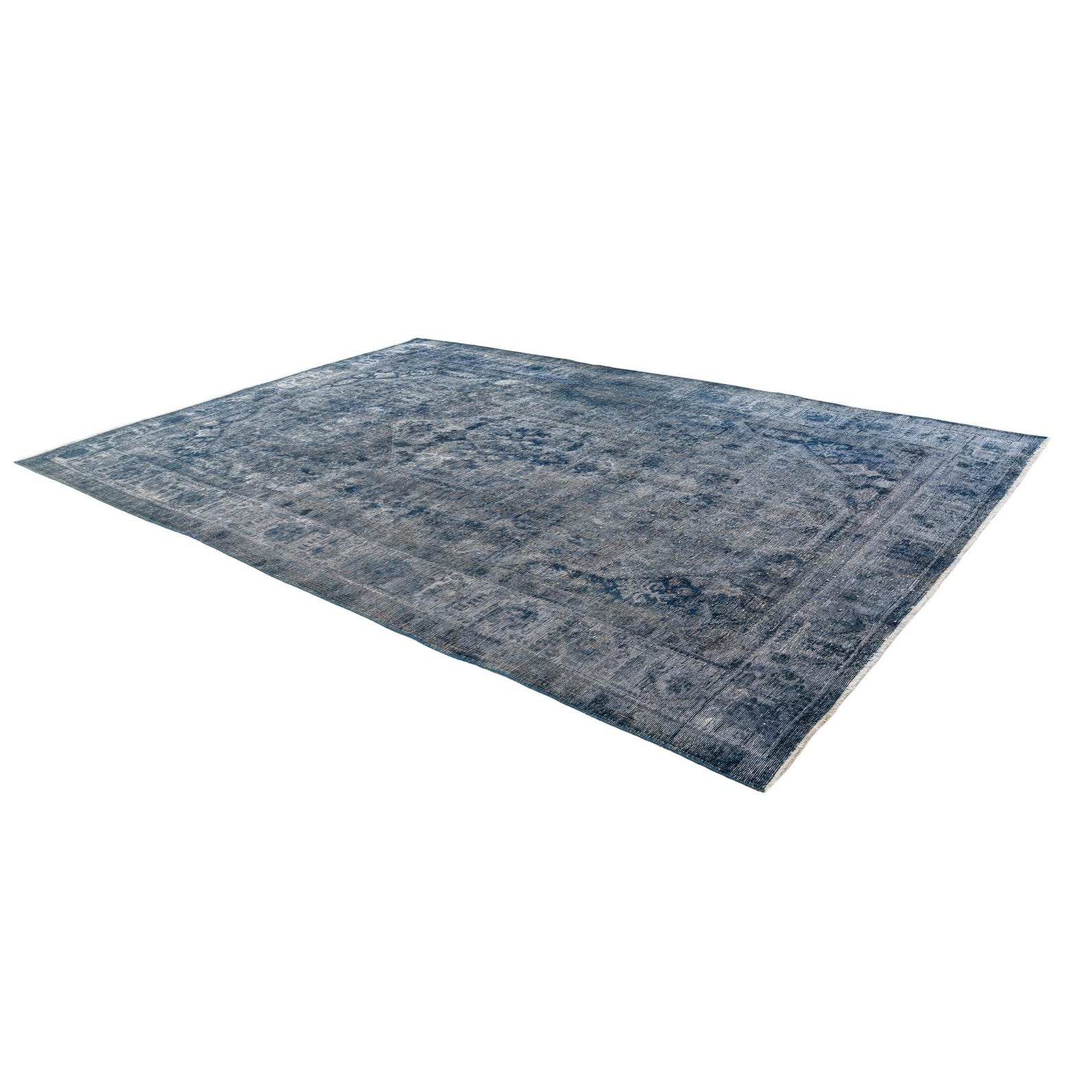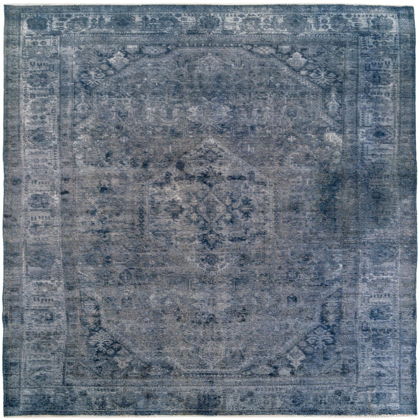 An 8x11 rectangular Ultra Vintage wool rug in shades of blue with a distressed Persian medallion pattern.