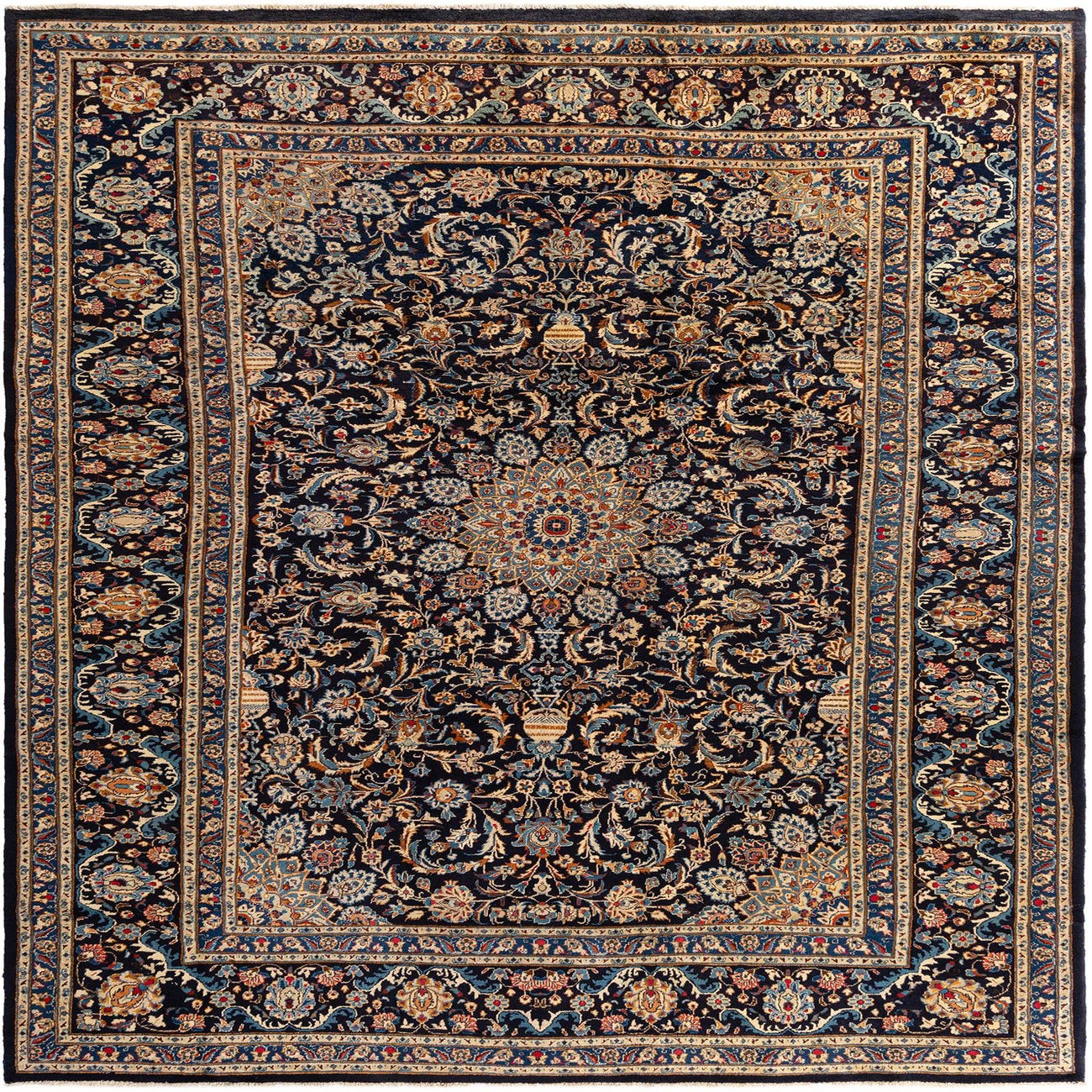 The Kashmar collection showcases a meticulously handcrafted 9x12 wool rug, adorned with an intricate pattern that captures the essence of traditional craftsmanship. The dominant dark blue background is opulent and provides a somber canvas for the intricate florals and accenting medallions, featuring a harmonious blend of beige, blue, brown, and orange hues. The complexity of its design is balanced by the botanical motifs which are precisely delineated, creating a sense of depth and sophistication.