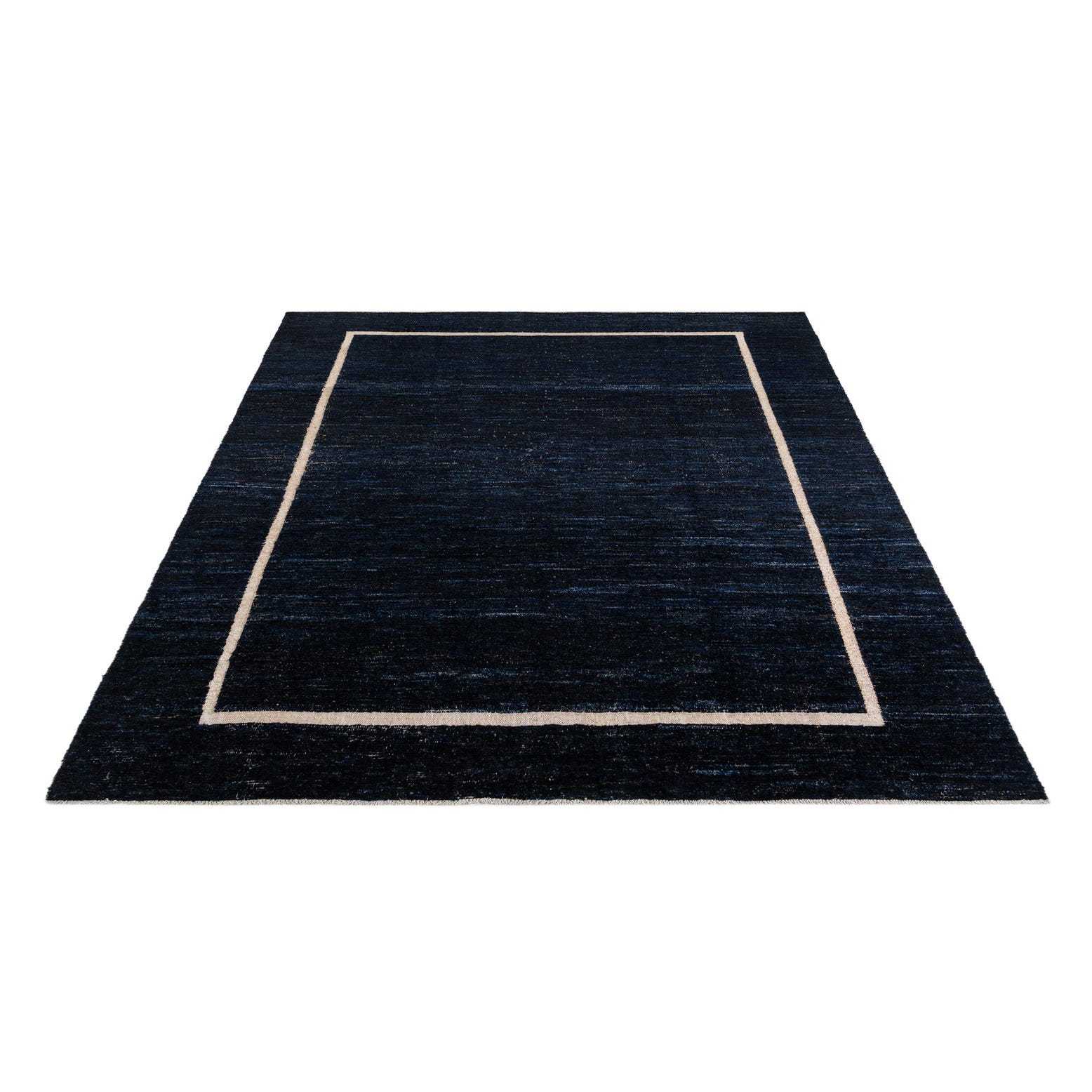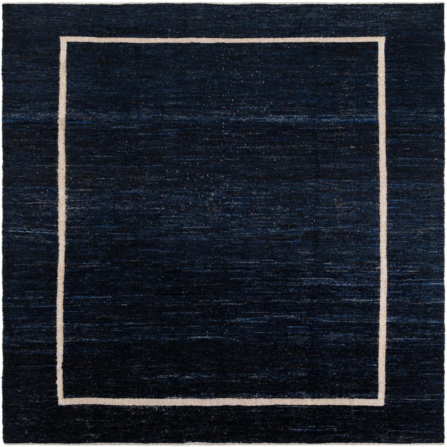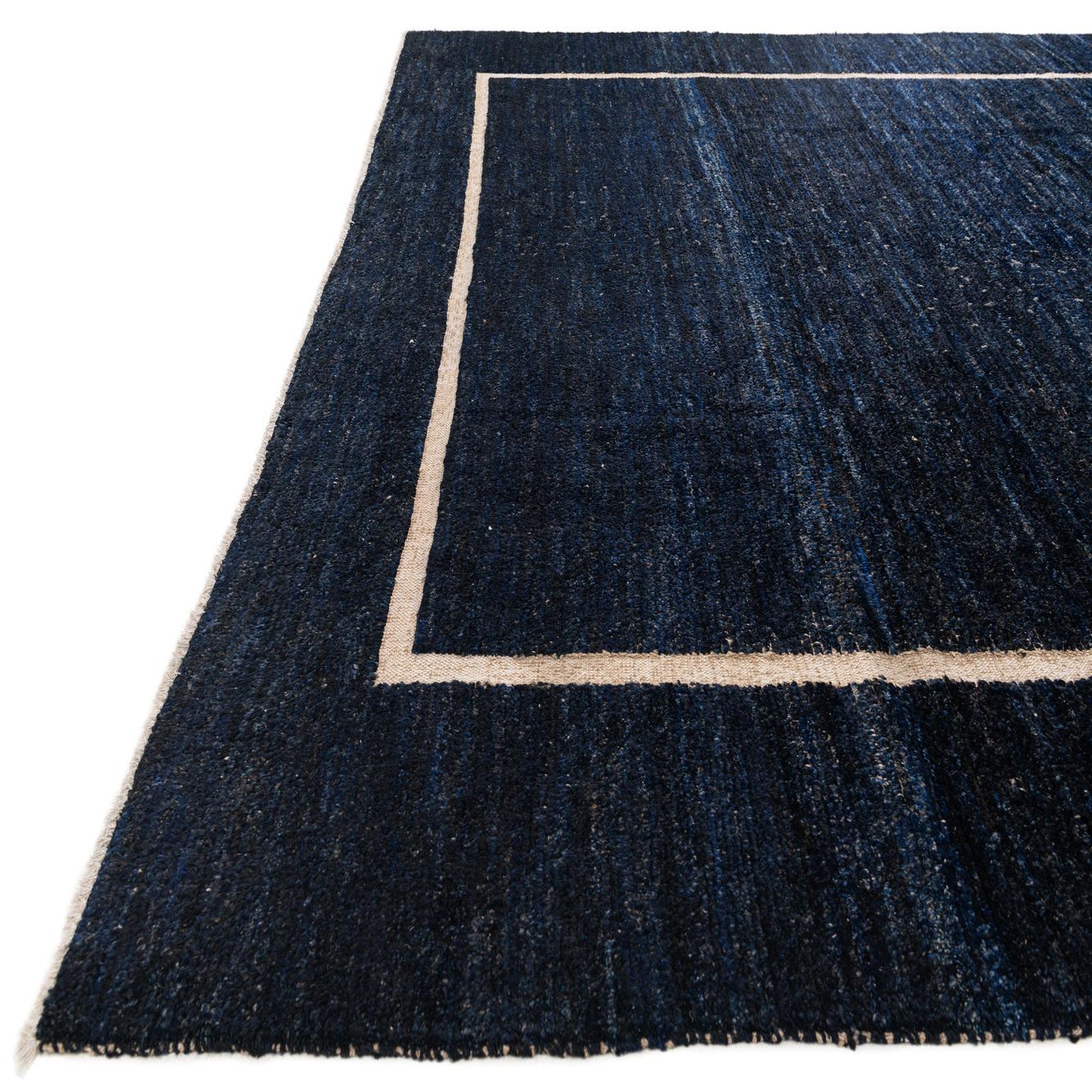 Primary color is Dark Blue. Colors in this rug include: Dark Blue, Black, Ivory.