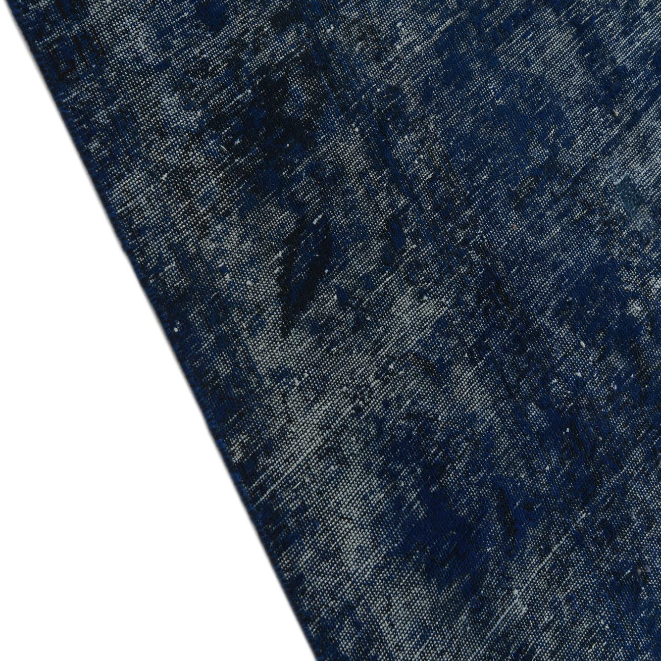 The Ultra Vintage collection presents a sophisticated 9x12 hand-knotted rug crafted from 100% wool, combining durability with a luxurious feel underfoot. This piece displays a deep dark blue background with intricately woven patterns in shades of black and ivory, creating a dynamic yet harmonious visual texture. The subtle variation in tone and classic design evoke a sense of age and history, while the deliberate distressing adds a contemporary edge.