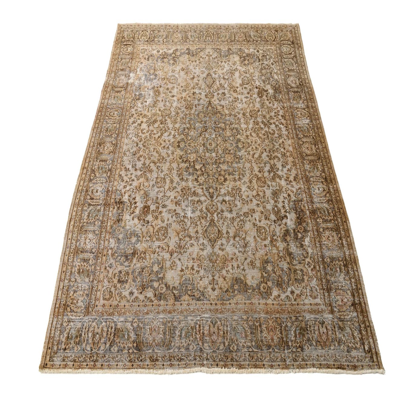 This Persian Ultra Vintage rug is an antique Persian Rug that has been washed, over-dyed, and then shaved down to a low pile. Look at the detail pictures to fully appreciate the uniqueness of this piece.