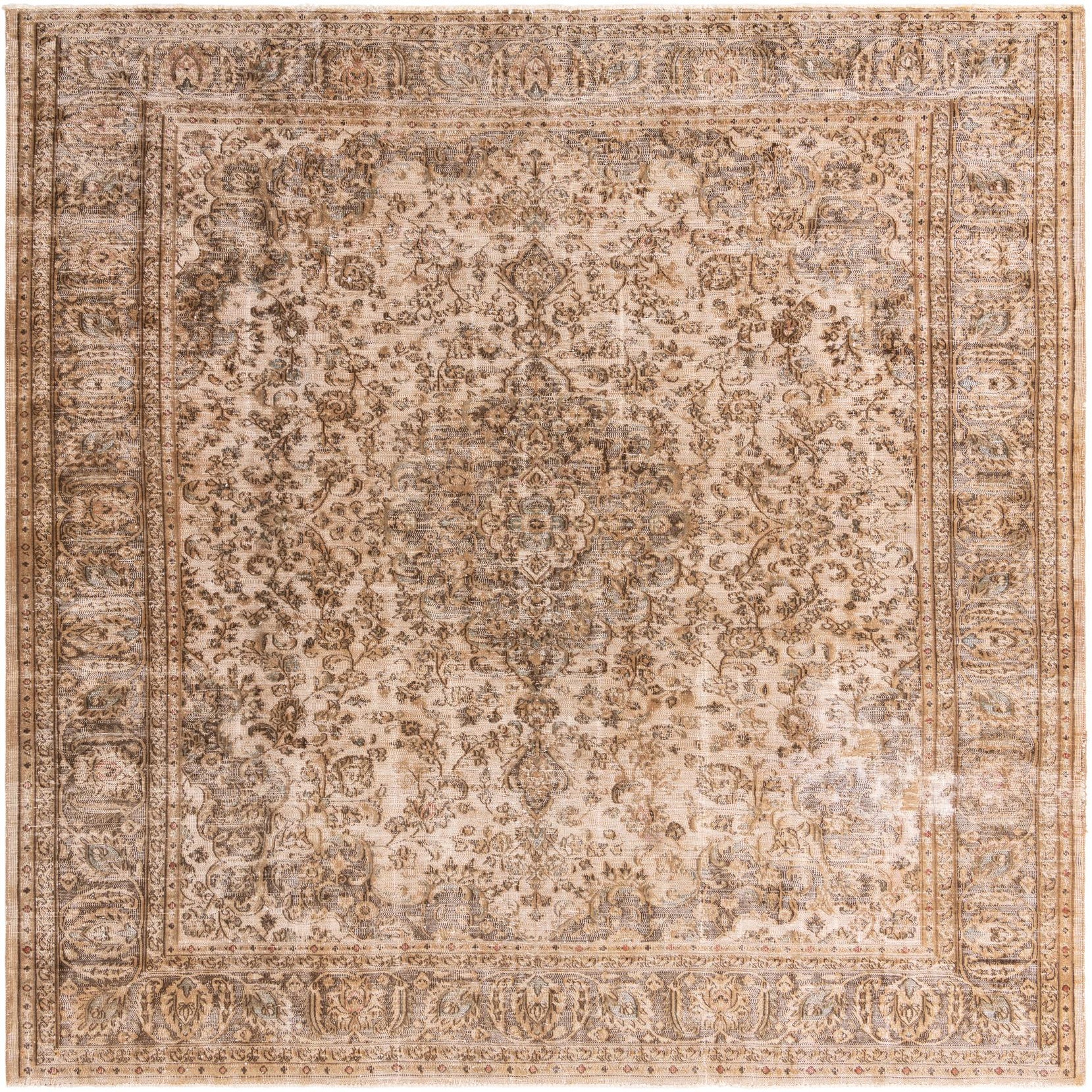 A 10x12 rectangular Ultra Vintage rug featuring a distressed Persian medallion pattern in browns and tans.