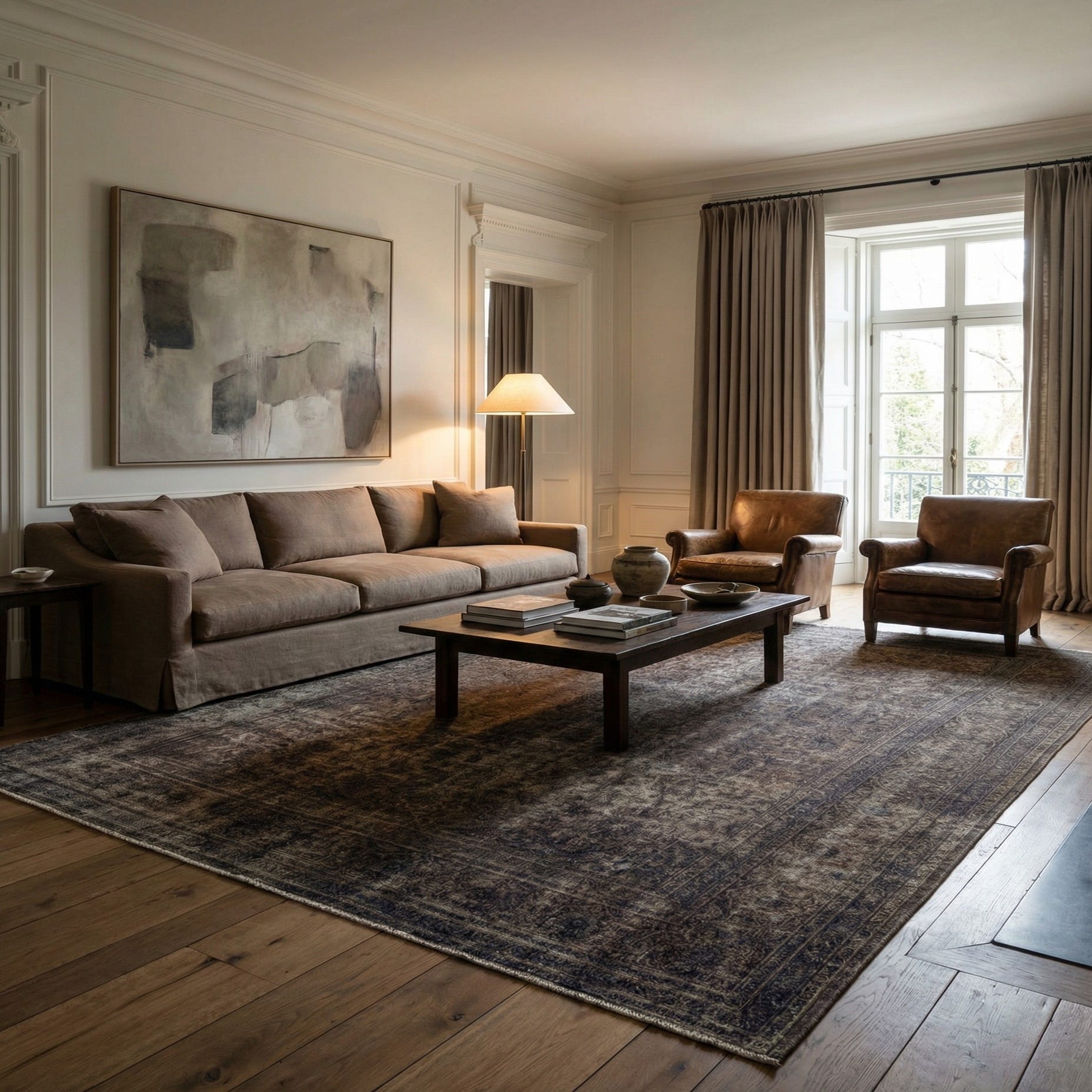 Primary color is Dark Brown. Colors in this rug include: Dark Brown, Brown.