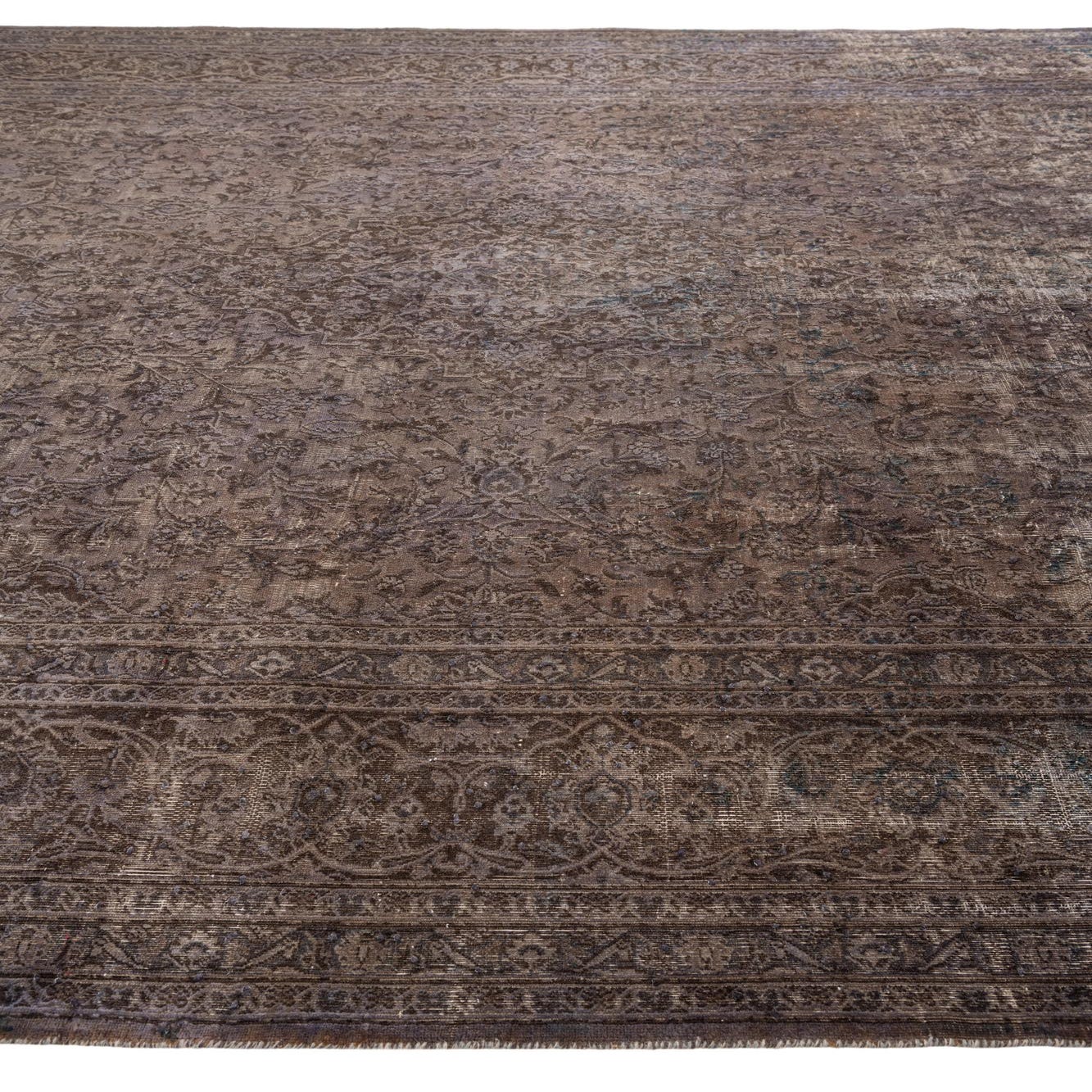 This Persian Ultra Vintage rug is an antique Persian Rug that has been washed, over-dyed, and then shaved down to a low pile. Look at the detail pictures to fully appreciate the uniqueness of this piece.
