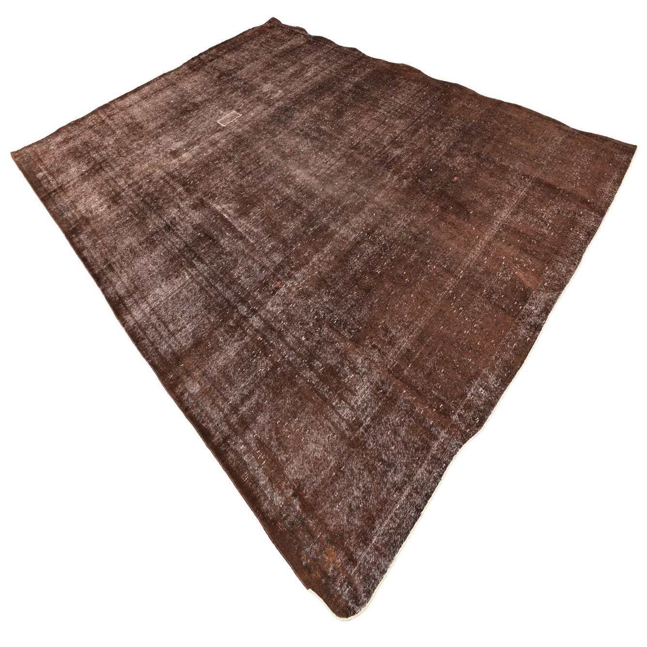 The Ultra Vintage collection presents a hand-knotted rug crafted from 100% wool, offering a sophisticated foundation for any room. This 10x13 area rug showcases a deep dark brown background with subtle variations of brown tones that create a rich, monochromatic look. The understated pattern exudes a sense of timelessness, reminiscent of worn heirloom textiles, and lends a comfortable yet elegant feel to the piece.