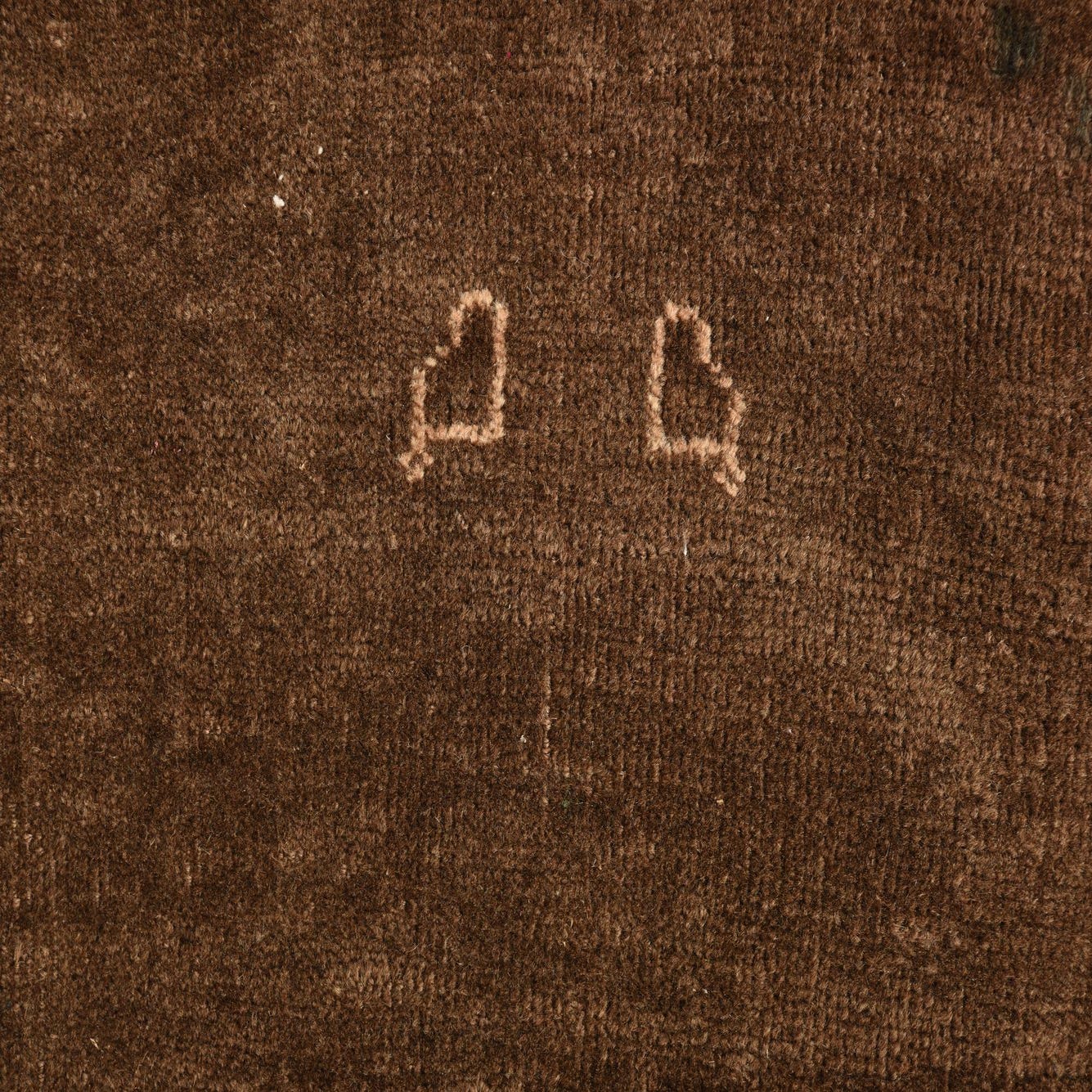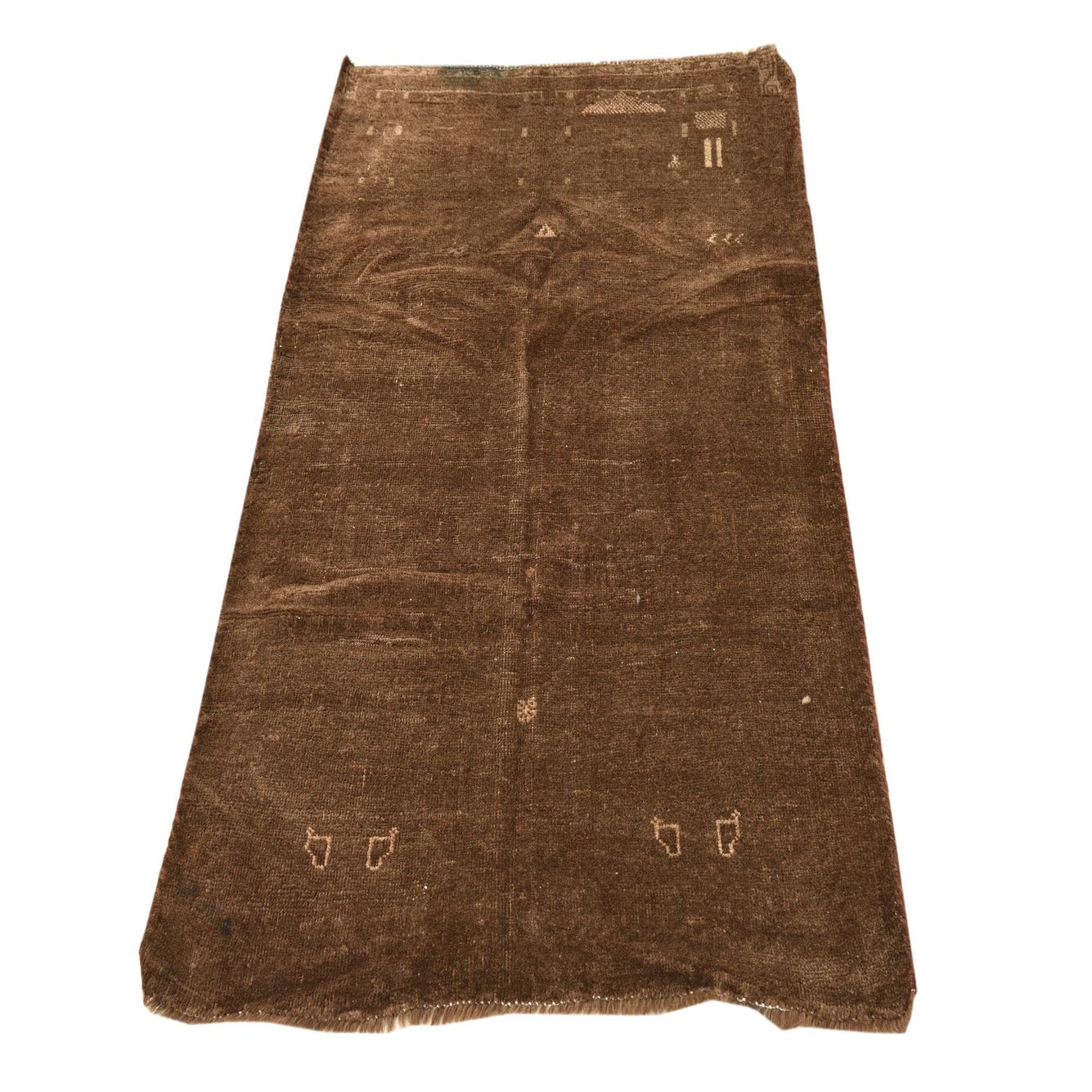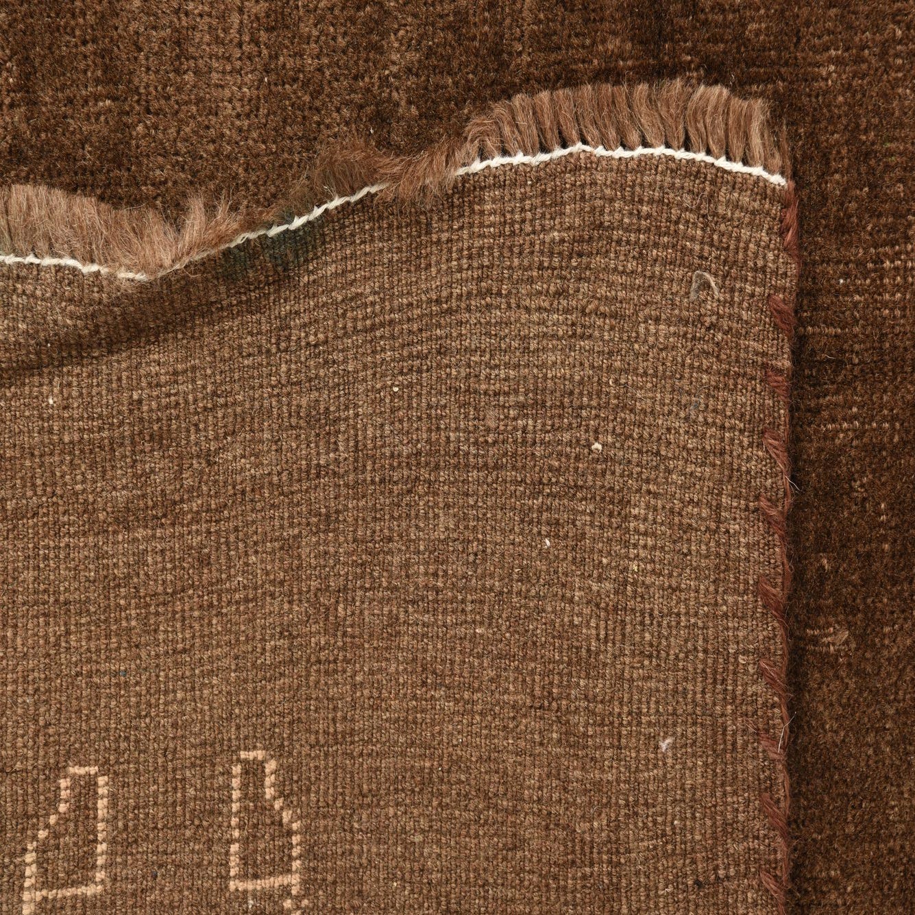 The Ultra Vintage Collection presents a refined 3x5 rug hand knotted from 100% wool, embodying a timeless sense of history with its semi-antique age of 40 to 60 years. The dark brown background anchors a subtle, low-contrast pattern adorned in hues of ivory and lighter browns, giving the piece a calm and grounded visual presence. The texture is characteristically woolen, offering a soft, dense pile that conveys steadiness and comfort underfoot.