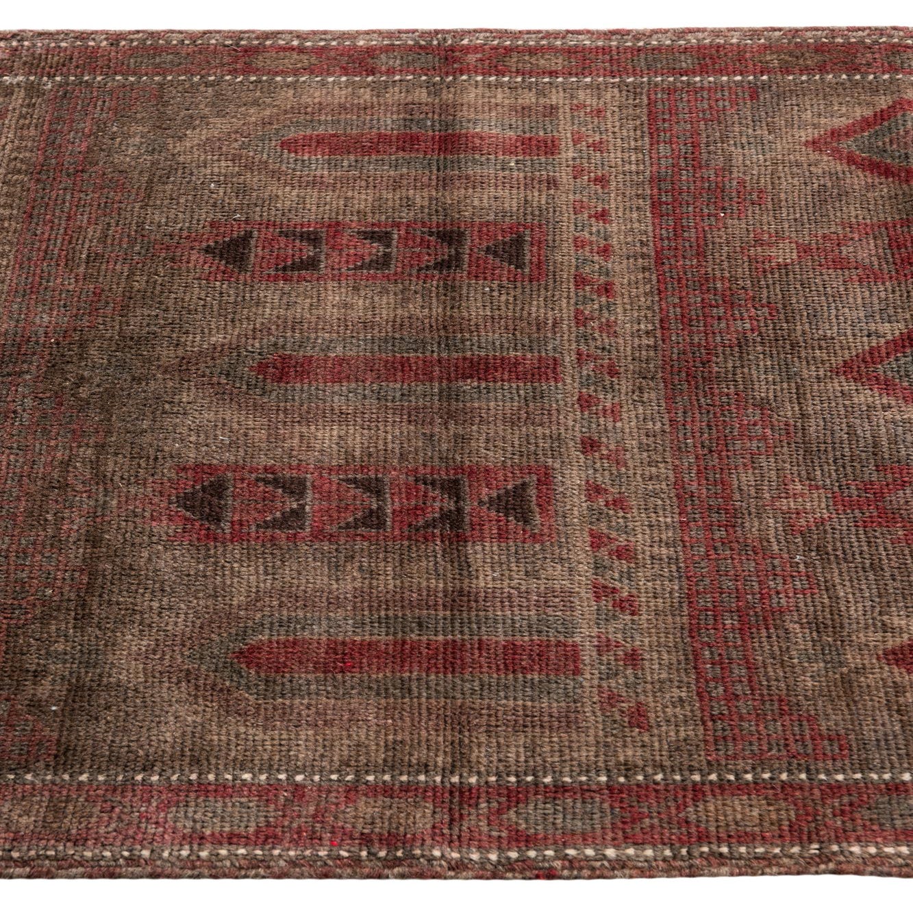 Primary color is Dark Brown. Colors in this rug include: Dark Brown, Brown, Red, Ivory.