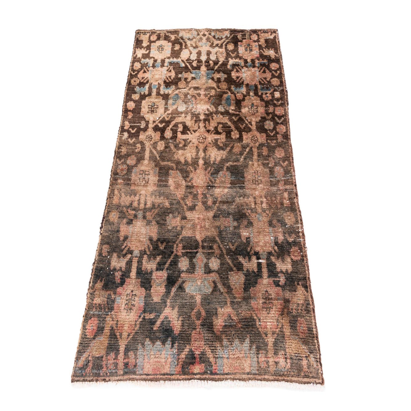 This Persian Ultra Vintage rug is an antique Persian Rug that has been washed, over-dyed, and then shaved down to a low pile. Look at the detail pictures to fully appreciate the uniqueness of this piece.