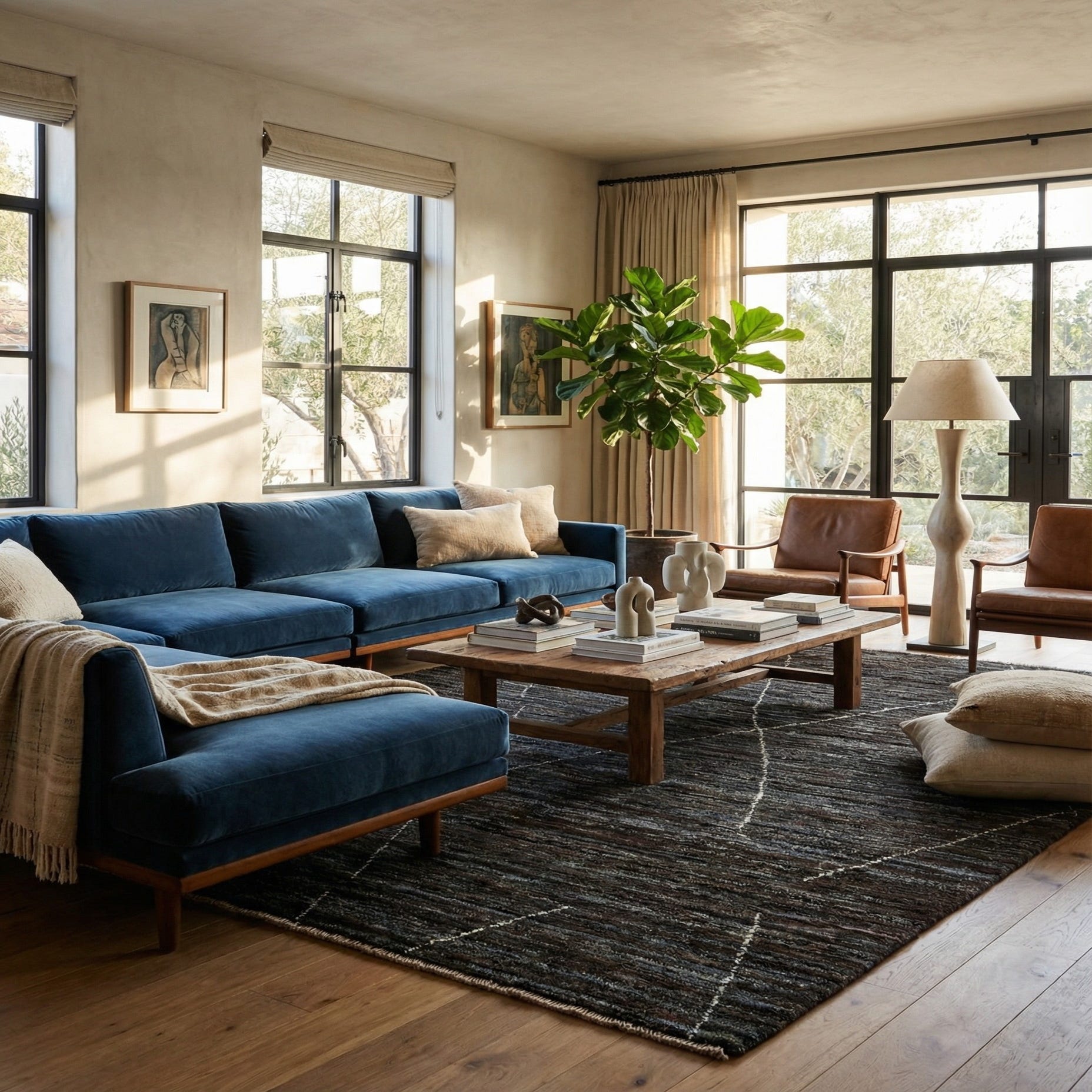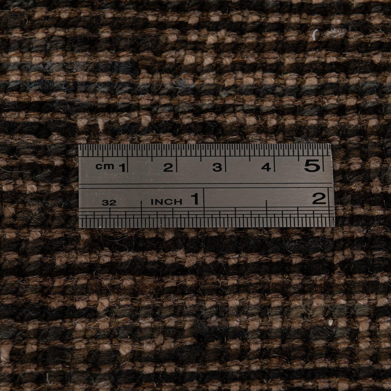 A 4x6 rectangular brown wool rug with a subtle tribal diamond pattern, ideal for a living room or bedroom.