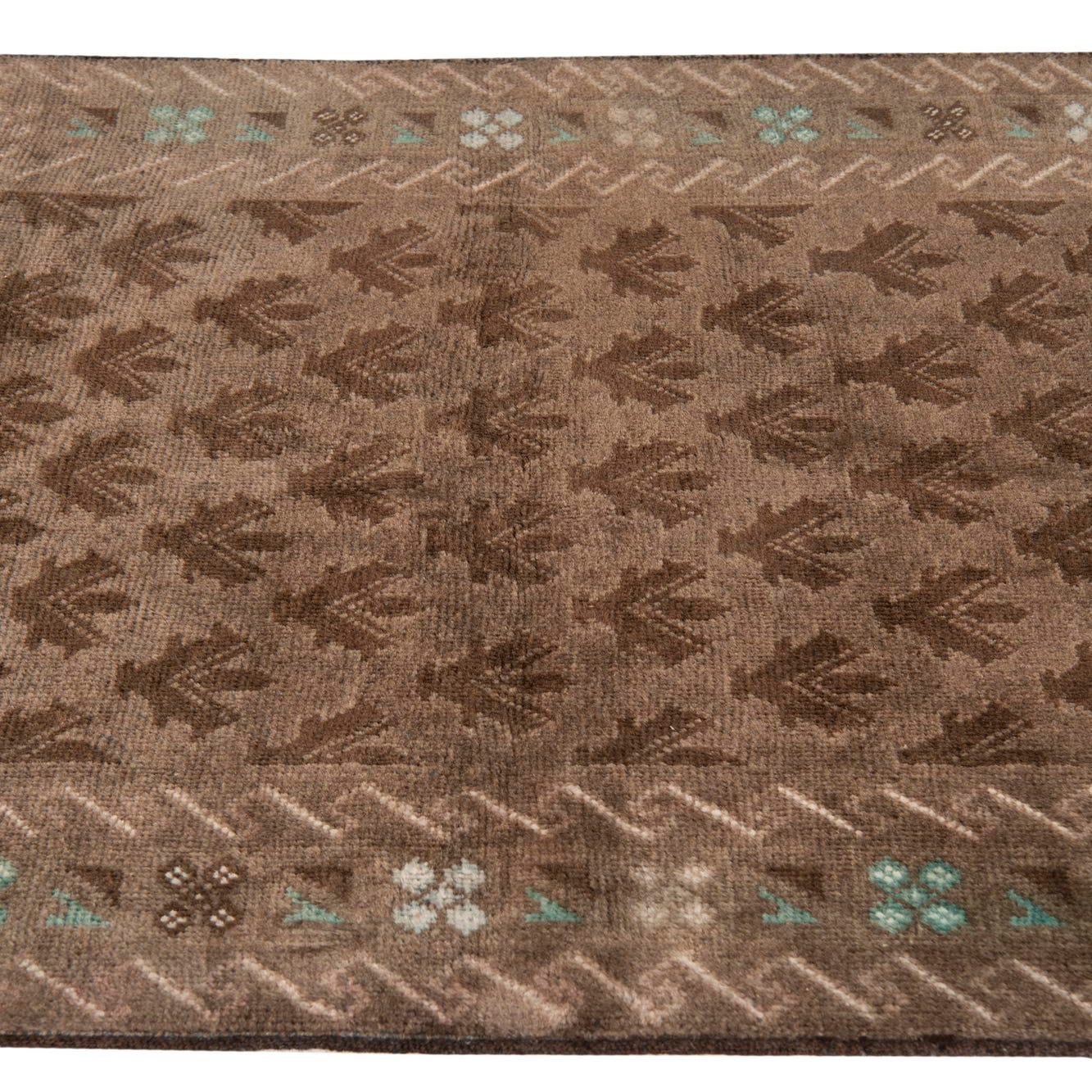 Primary color is Dark Brown. Colors in this rug include: Dark Brown, Brown, Green, Ivory, Light Brown.