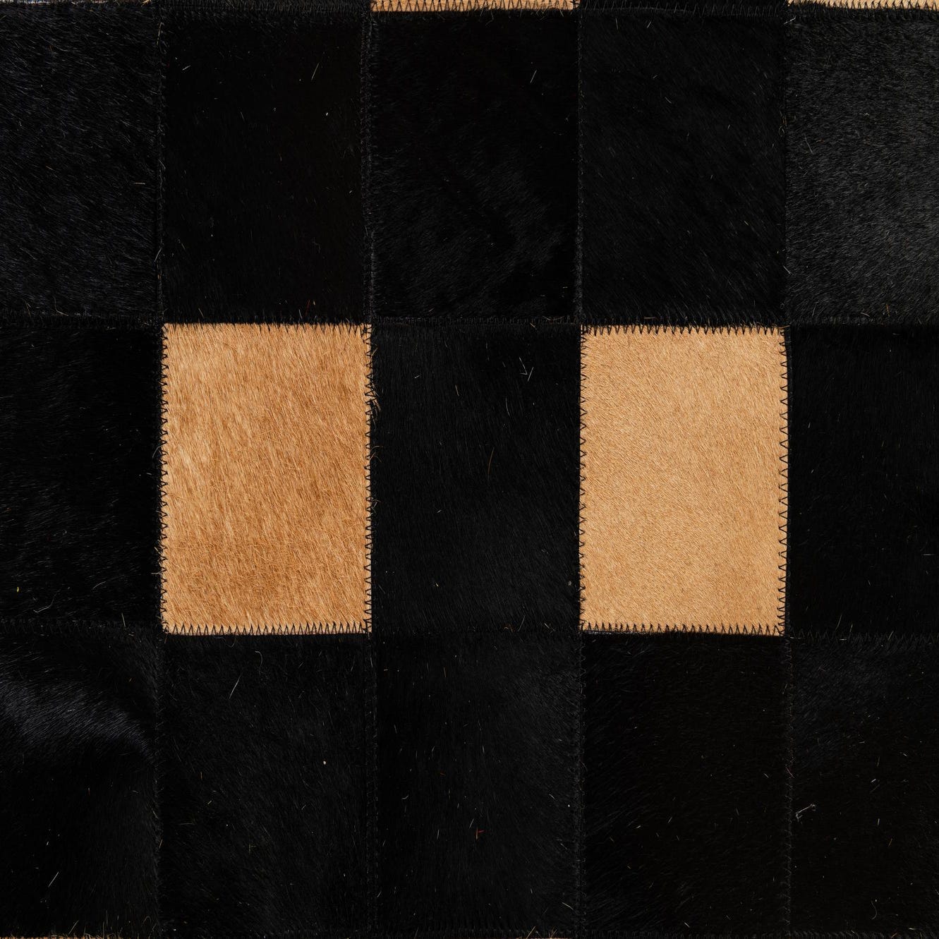 A 5x8 rectangular Cowhide - Patchwork rug featuring a modern checkerboard pattern of alternating black and natural brown cowhide squares.