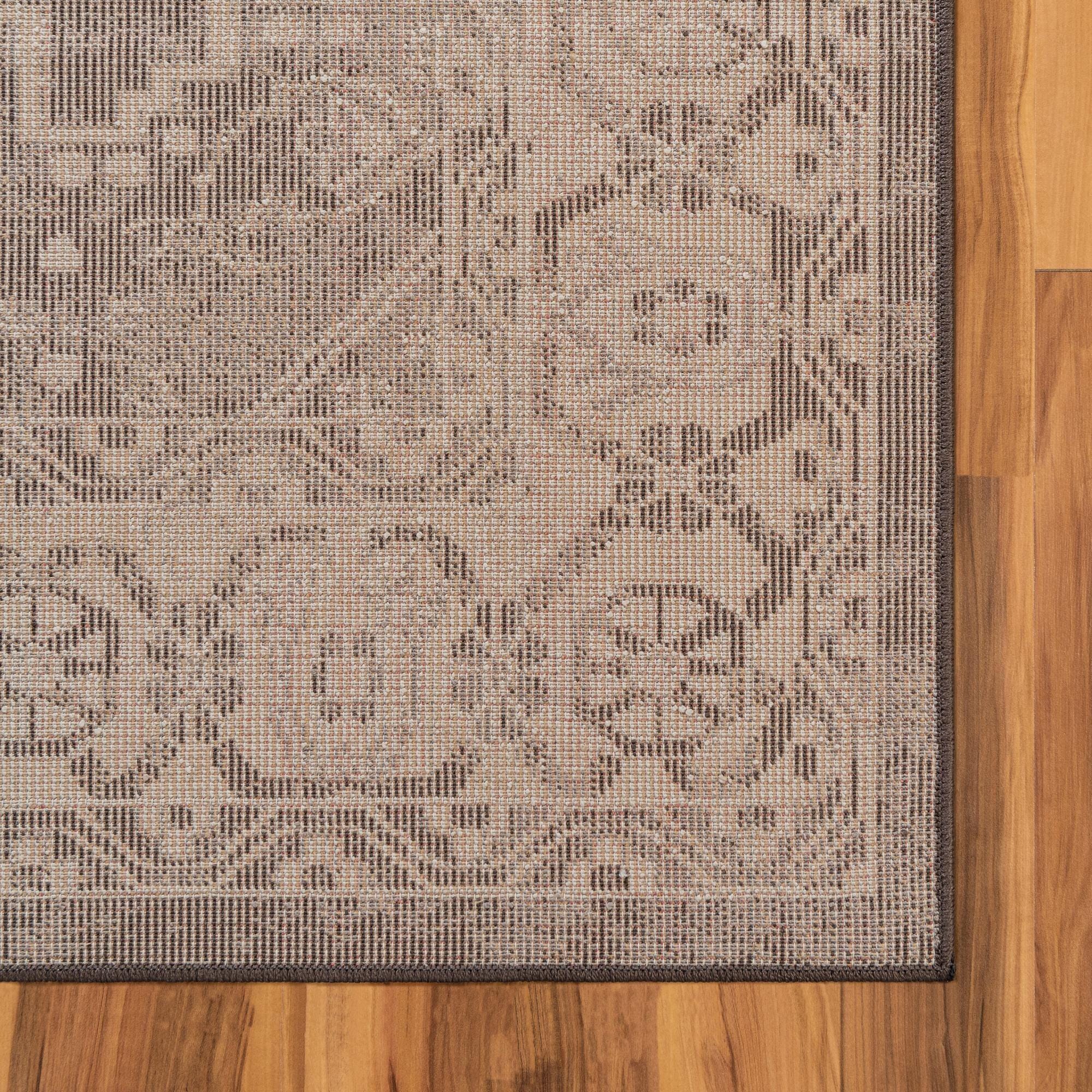 Primary color is Dark Brown. Colors in this rug include: Dark Brown, Gray, Ivory, Light Brown.