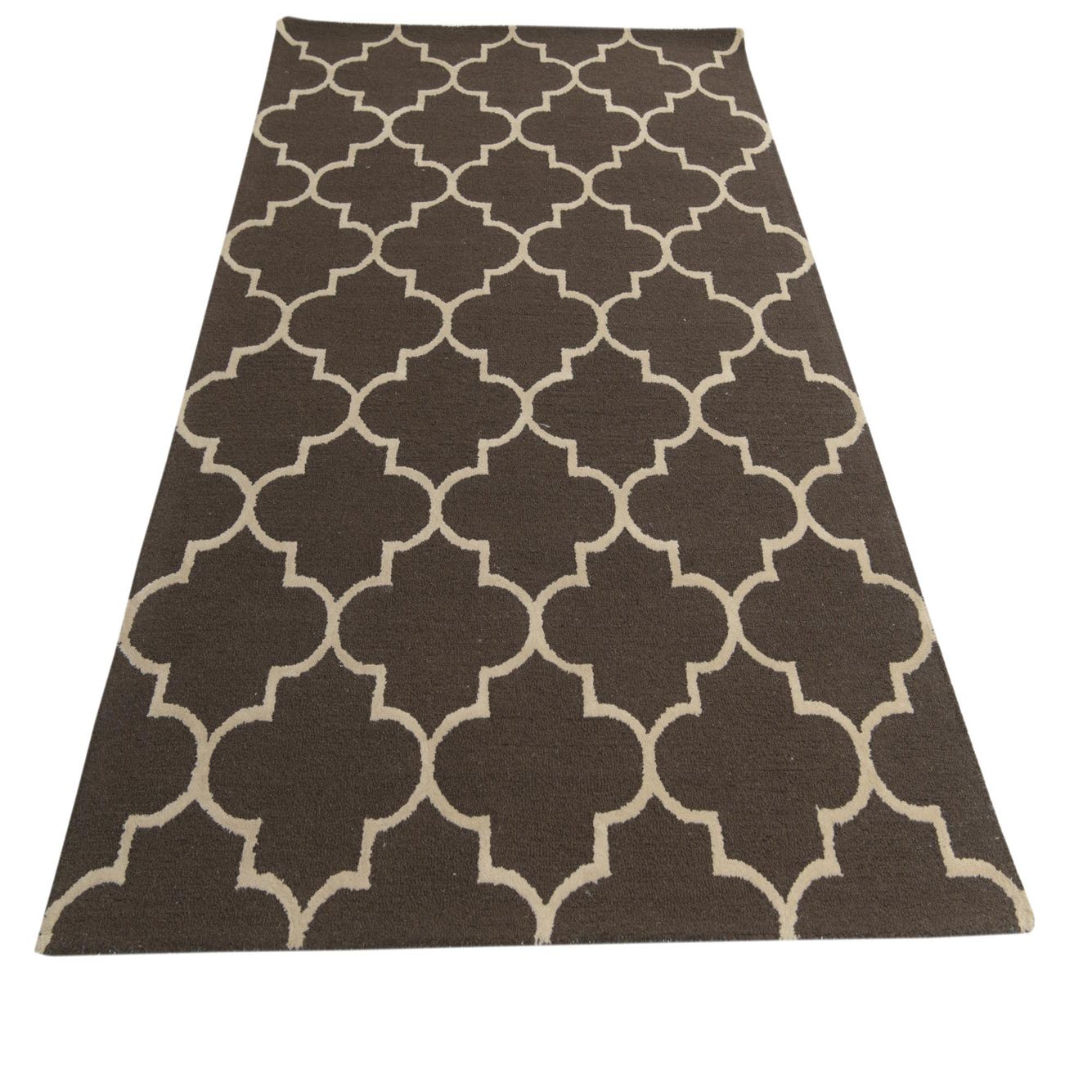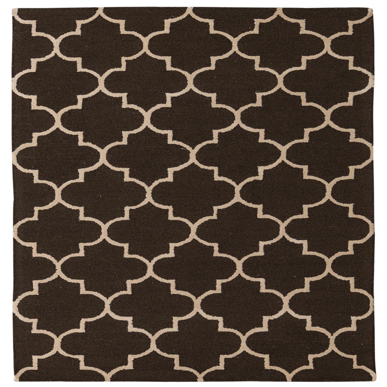 Primary color is Dark Brown. Colors in this rug include: Dark Brown, Ivory.