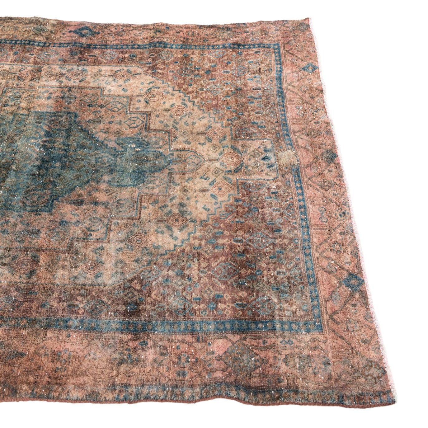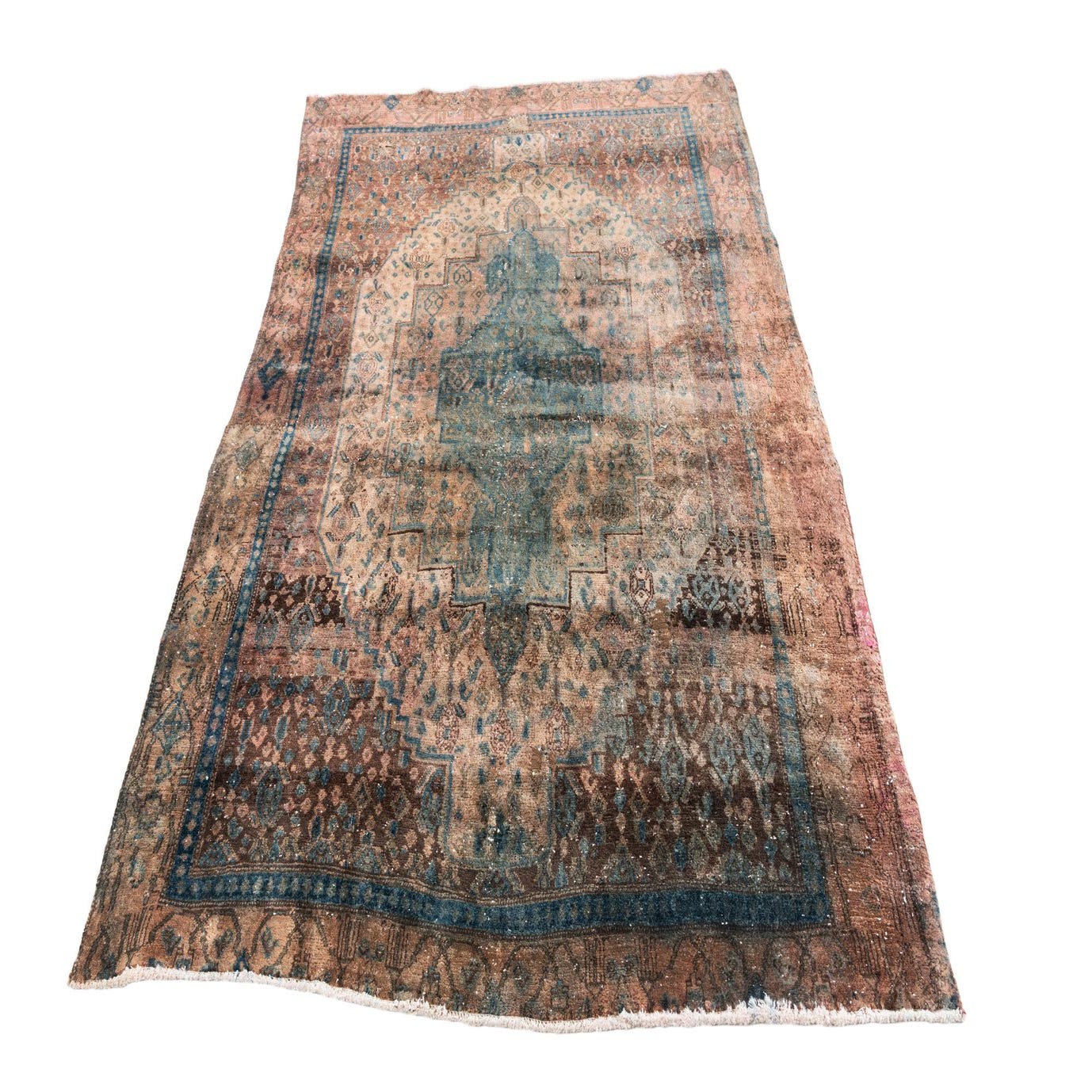 This Persian Ultra Vintage rug is an antique Persian Rug that has been washed, over-dyed, and then shaved down to a low pile. Look at the detail pictures to fully appreciate the uniqueness of this piece.