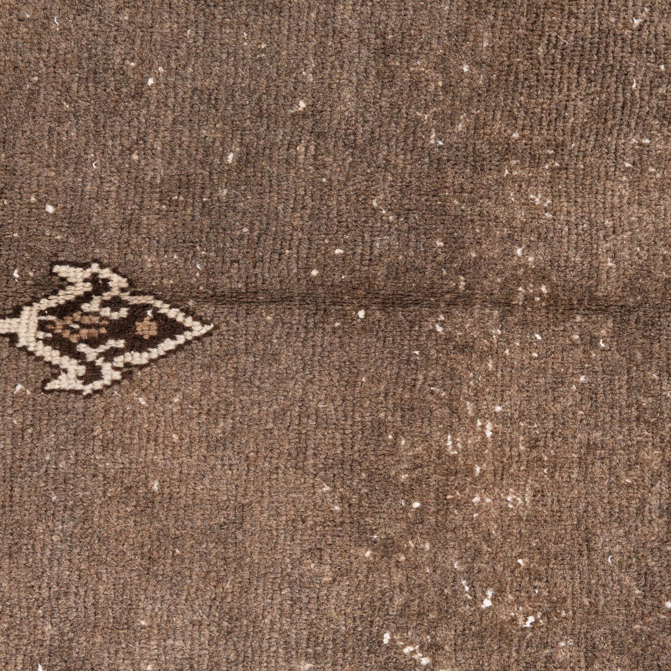 Hand-knotted in 100% wool, the rug has a tactile, slightly dense pile that yields softly underfoot and shows gentle variation where the surface is faded. The wool's natural texture deepens the dark brown ground and warms the rust and light-brown highlights. Pair it with warm wood tones and leather seating for a grounded living room, place it beneath a coffee table or in a study to add pattern without overwhelming the space, or use it in an entry or den to introduce a quietly lived-in, traditional look.