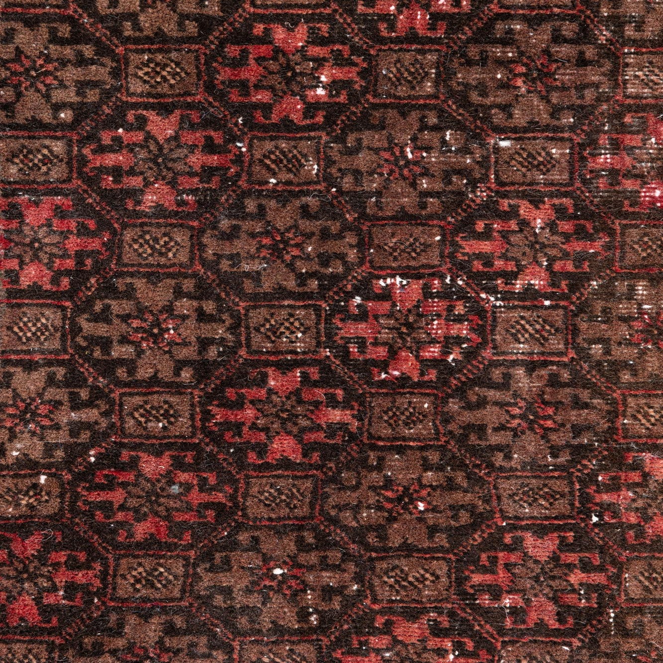 A 6 ft runner rug with a distressed Persian pattern in shades of brown and tan, featuring a flat pile.