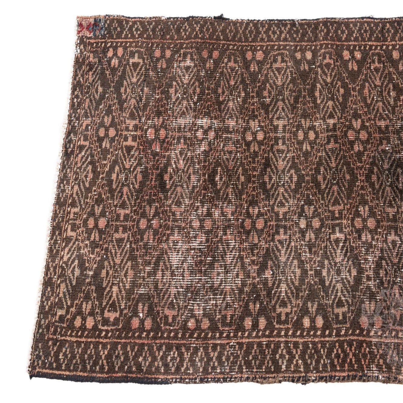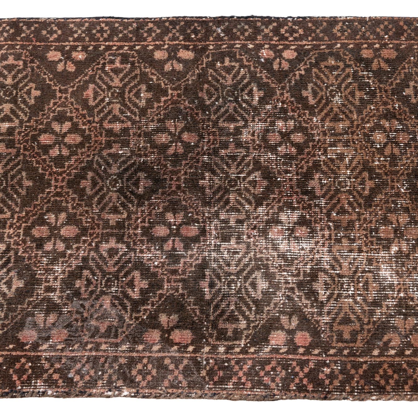 This Persian Ultra Vintage rug is an antique Persian Rug that has been washed, over-dyed, and then shaved down to a low pile. Look at the detail pictures to fully appreciate the uniqueness of this piece.