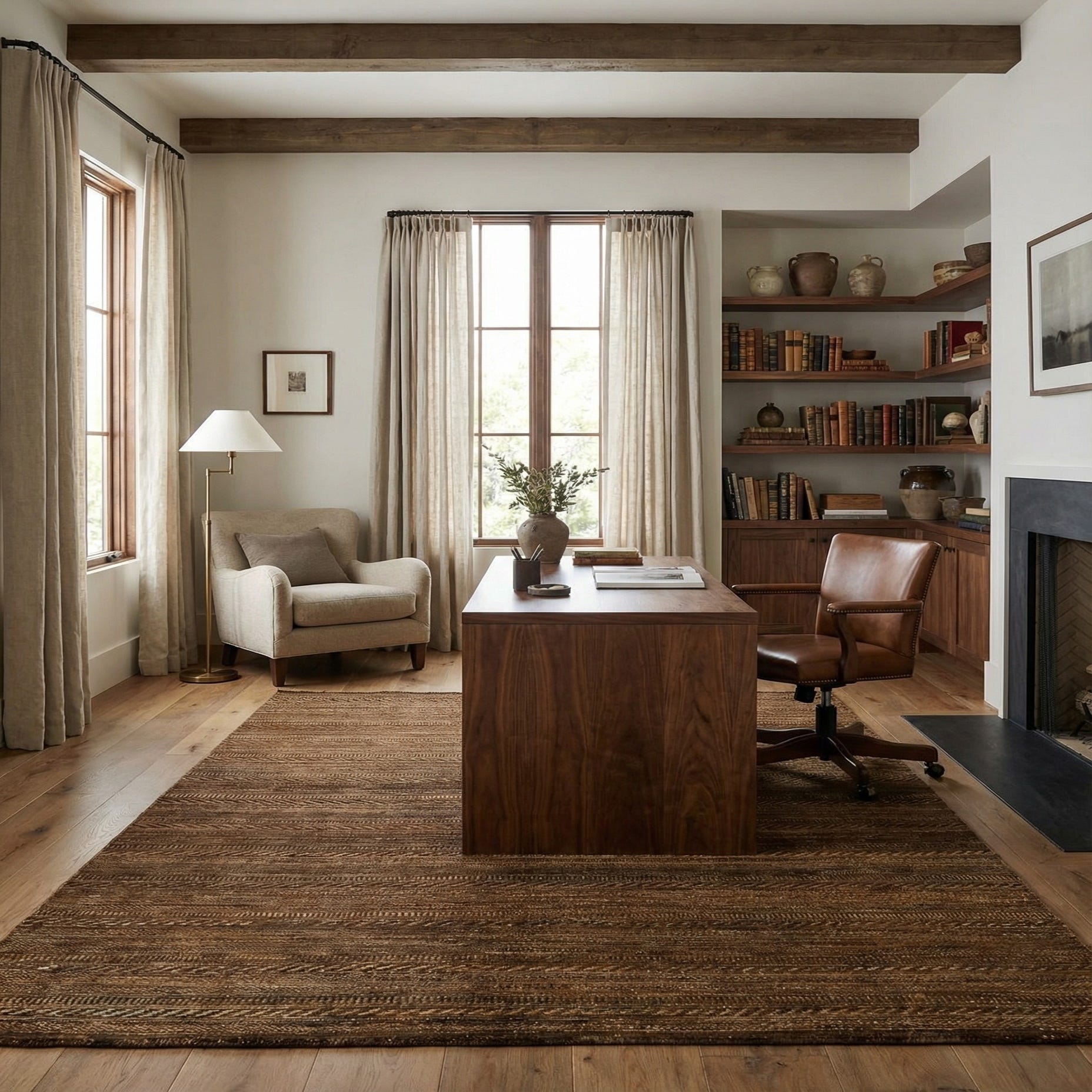 Primary color is Dark Brown. Colors in this rug include: Dark Brown, Brown, Ivory.