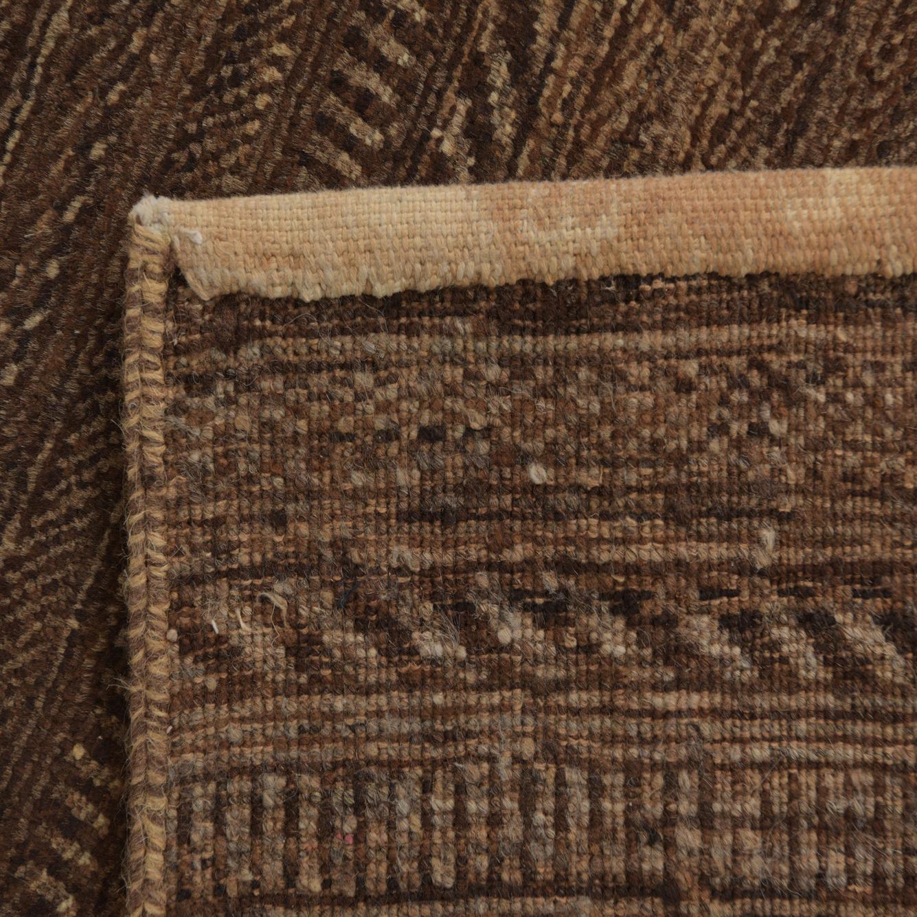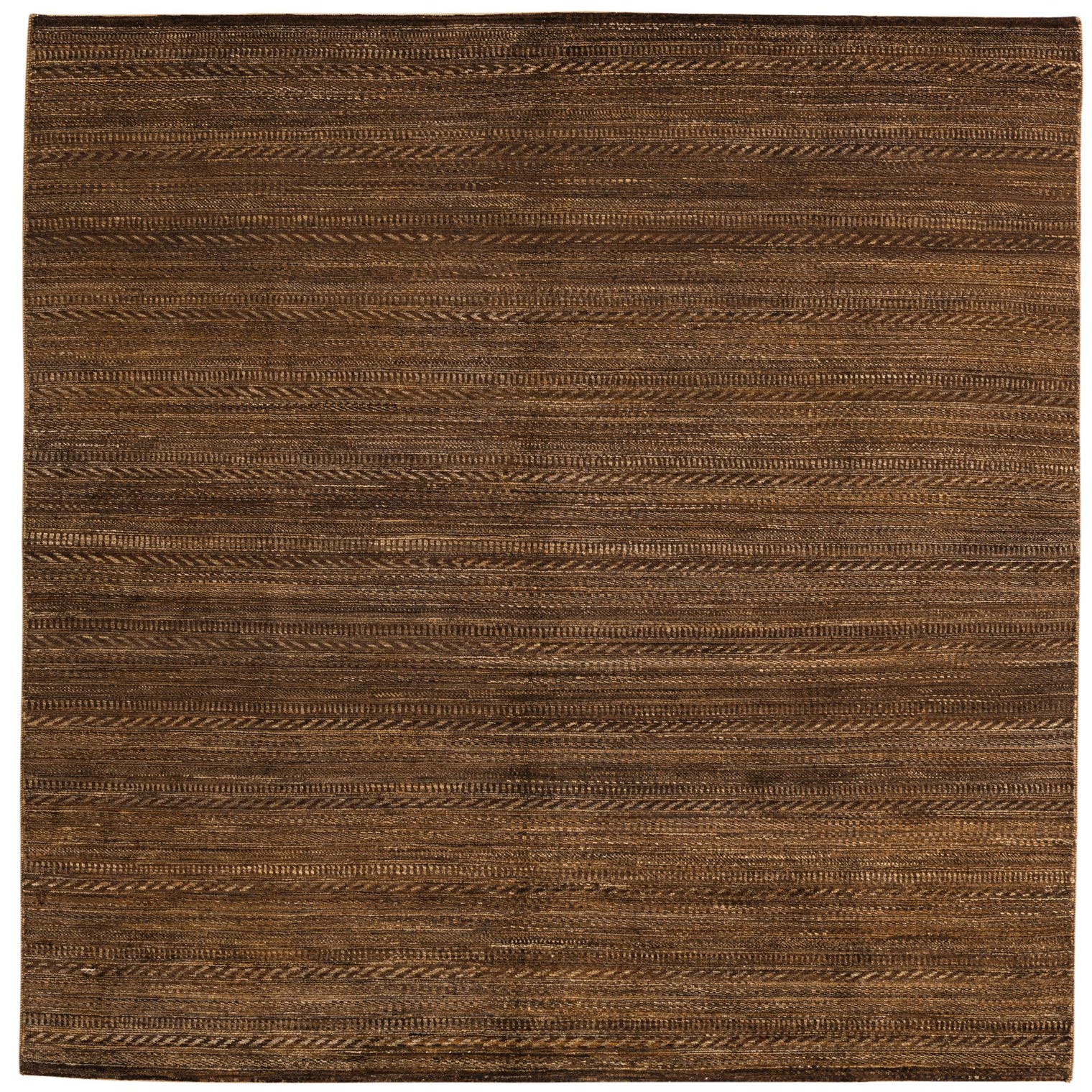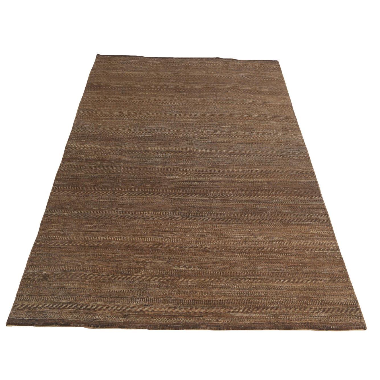 A 6x9 rectangular Kashkuli Gabbeh rug in varying shades of brown with horizontal stripes and subtle geometric patterns.