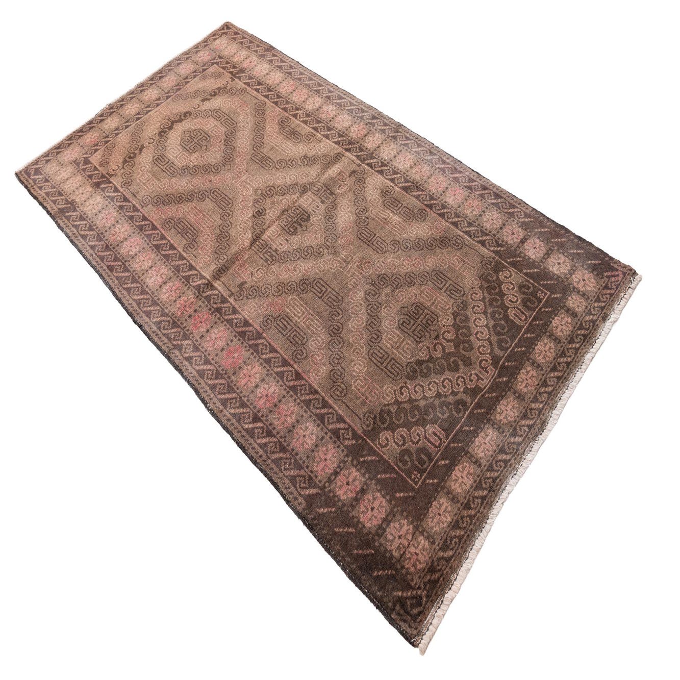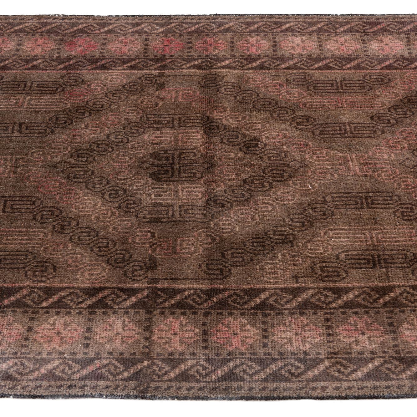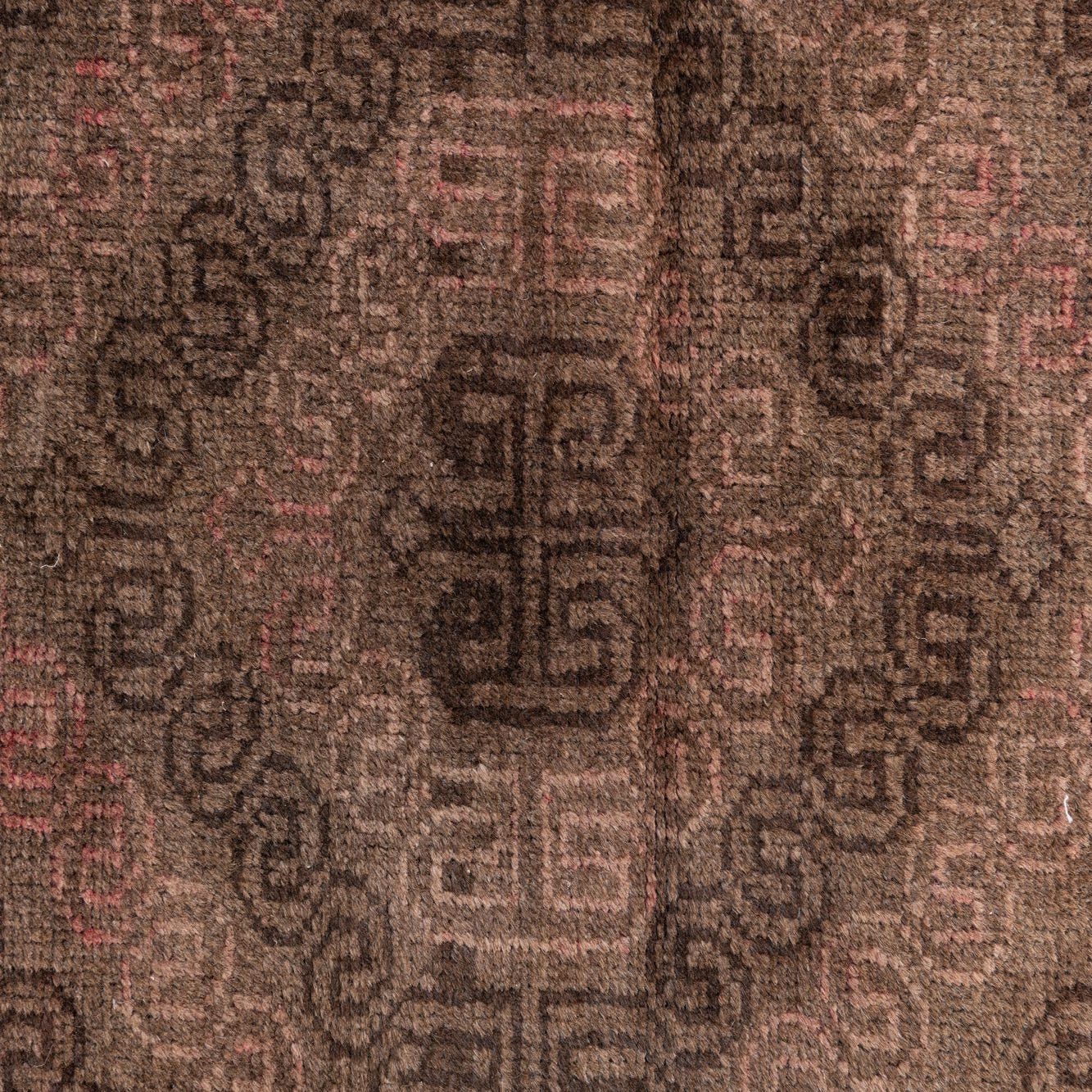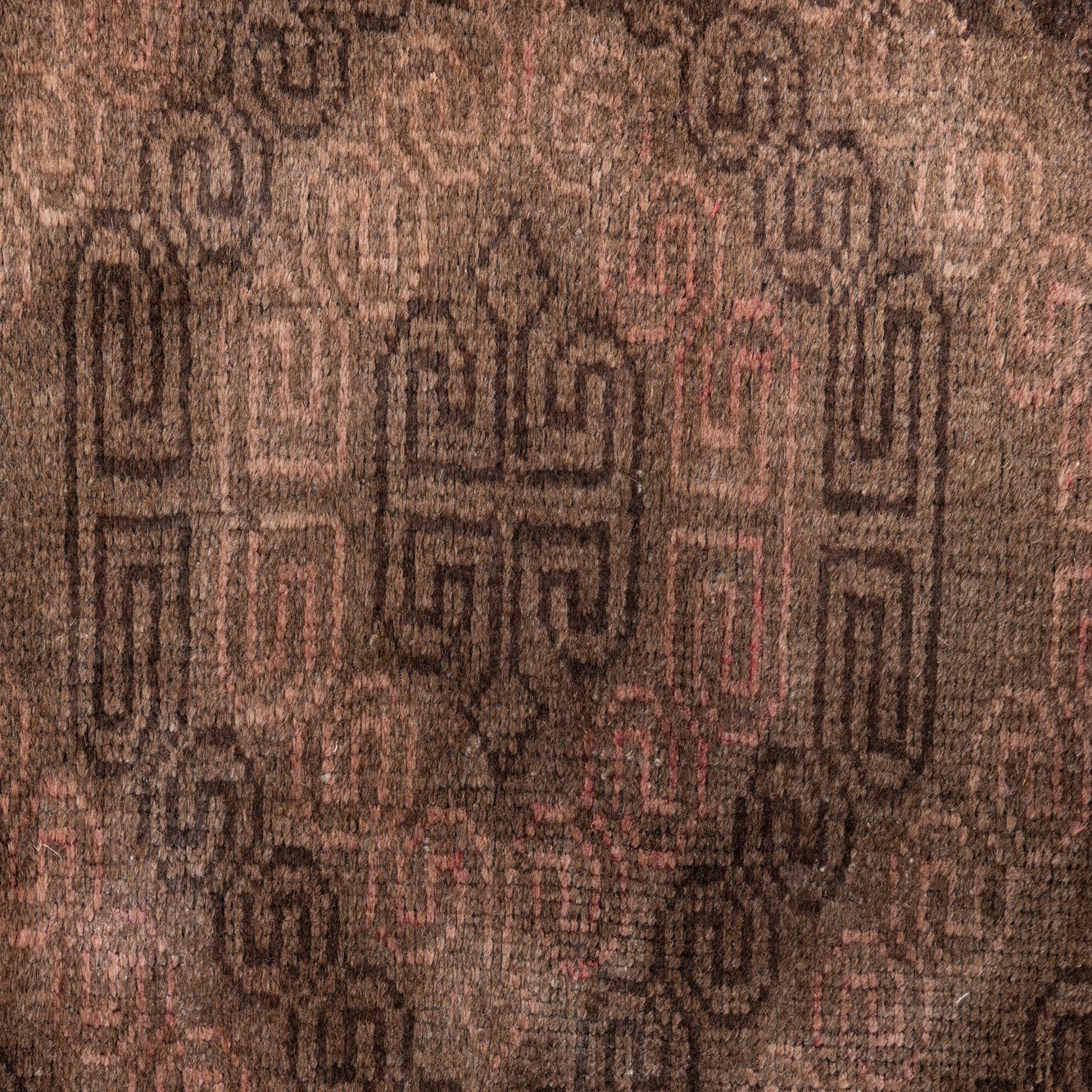 Primary color is Dark Brown. Colors in this rug include: Dark Brown, Brown, Rust Red.