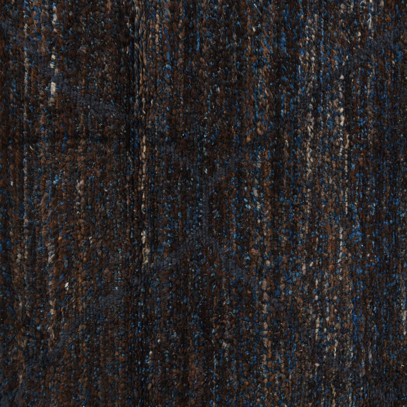 Primary color is Dark Brown. Colors in this rug include: Dark Brown, Beige, Blue, Brown.