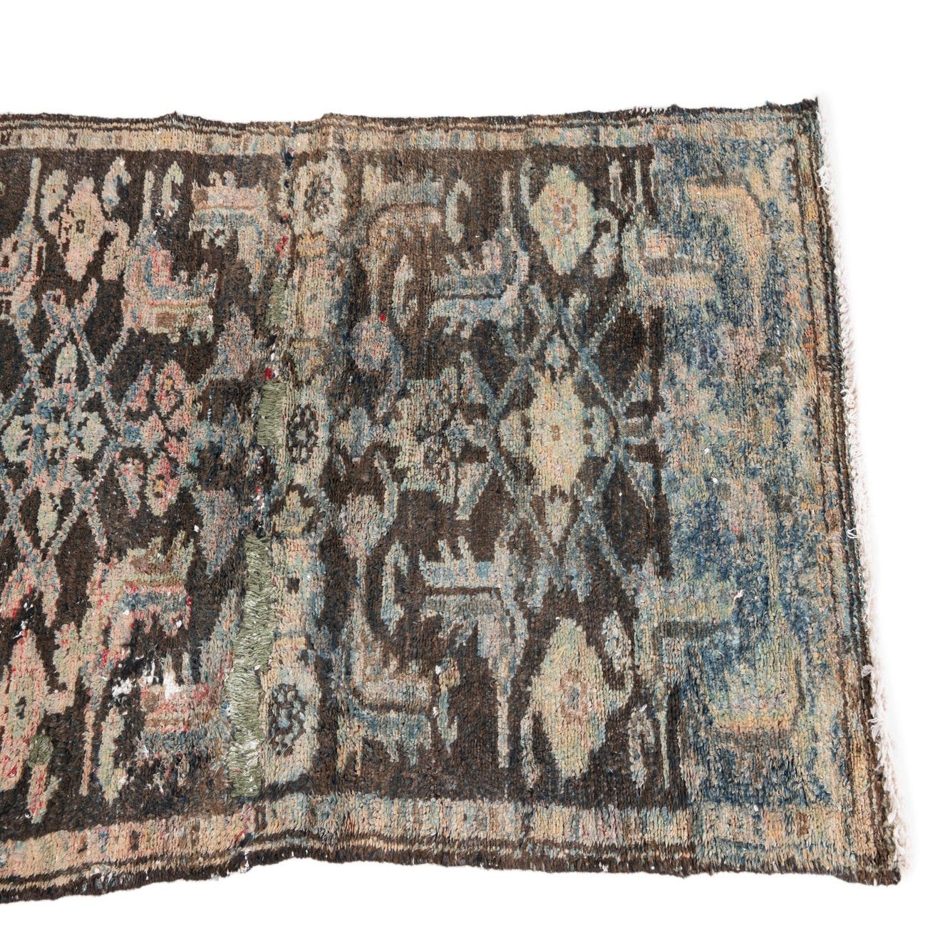 This Persian Ultra Vintage rug is an antique Persian Rug that has been washed, over-dyed, and then shaved down to a low pile. Look at the detail pictures to fully appreciate the uniqueness of this piece.