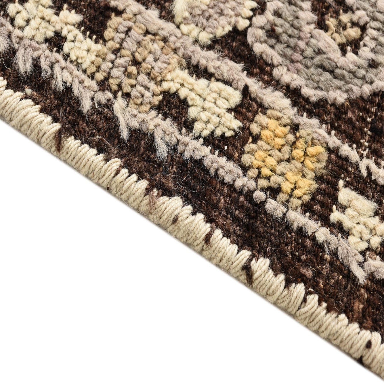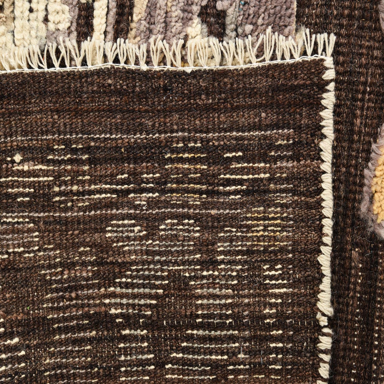 Primary color is Dark Brown. Colors in this rug include: Dark Brown, Yellow, Gray, Ivory.