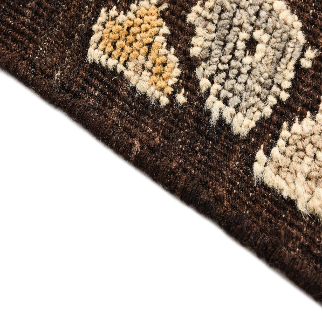 Primary color is Dark Brown. Colors in this rug include: Dark Brown, Ivory, Yellow, Gray, Brown.