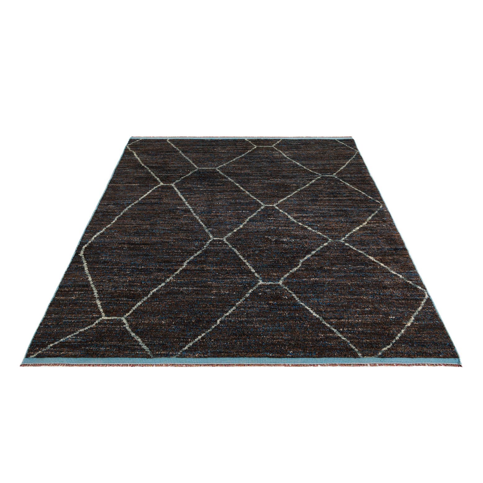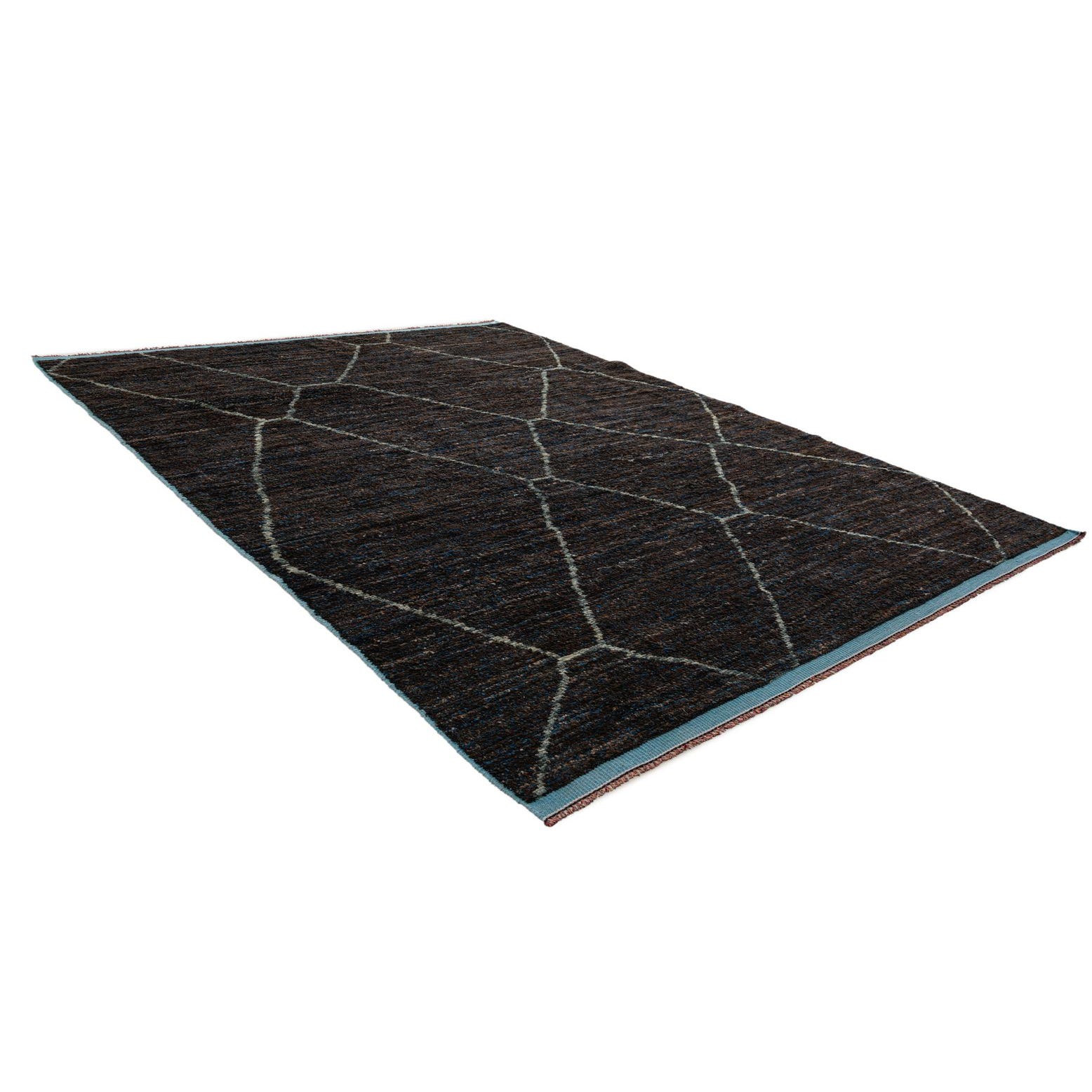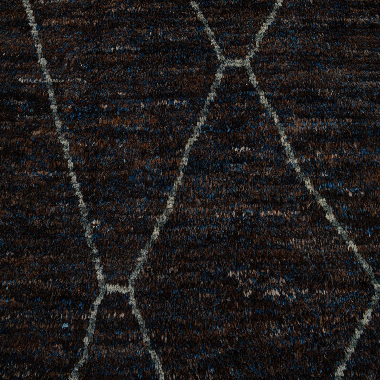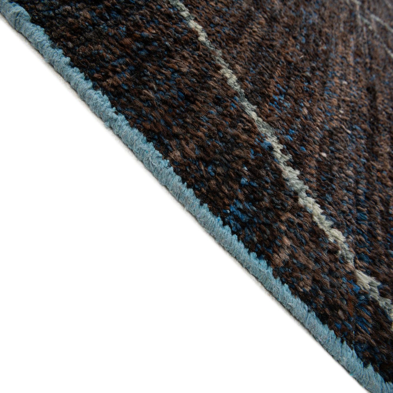 Primary color is Dark Brown. Colors in this rug include: Dark Brown, Blue, Ivory.