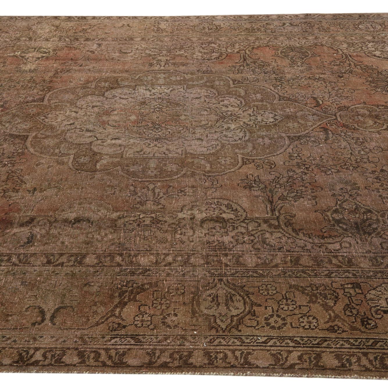 This Persian Ultra Vintage rug is an antique Persian Rug that has been washed, over-dyed, and then shaved down to a low pile. Look at the detail pictures to fully appreciate the uniqueness of this piece.