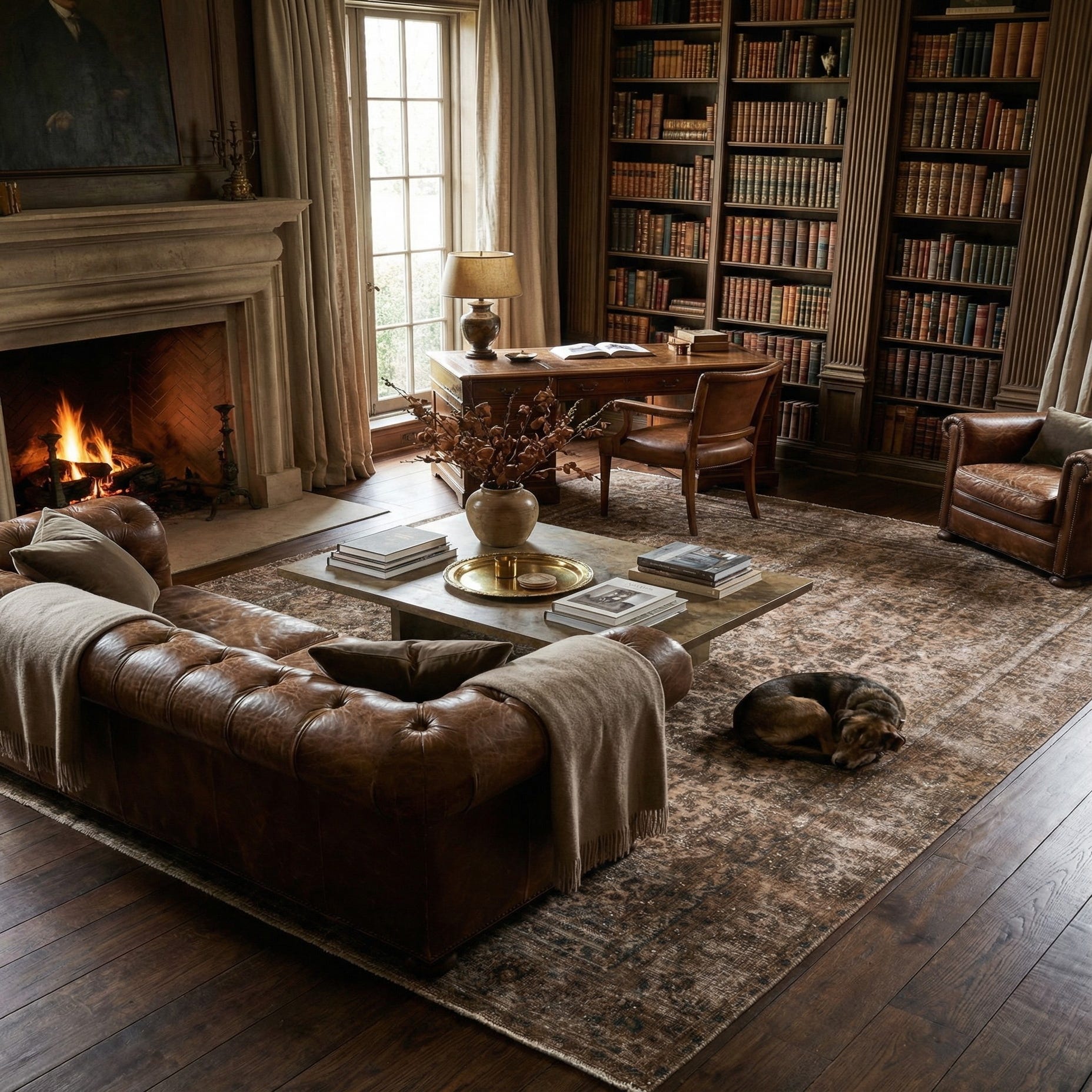 An 8x11 rectangular brown and tan Persian-style rug with a distressed medallion pattern, suitable for a living room.