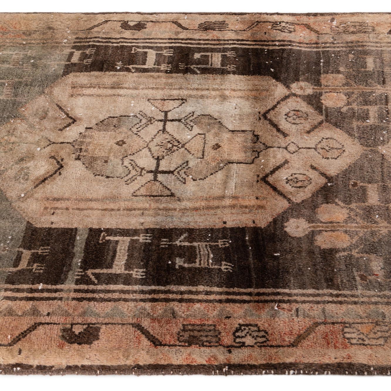 Primary color is Dark Brown. Colors in this rug include: Dark Brown, Brown, Rust Red, Ivory.