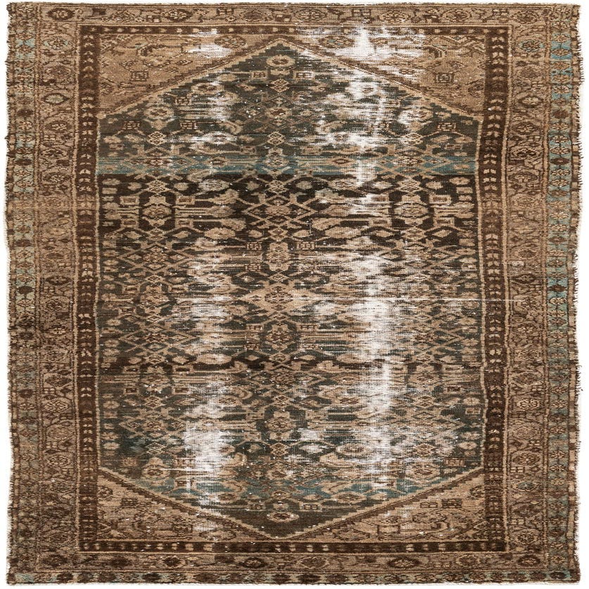 This Persian Ultra Vintage rug is an antique Persian Rug that has been washed, over-dyed, and then shaved down to a low pile. Look at the detail pictures to fully appreciate the uniqueness of this piece.
