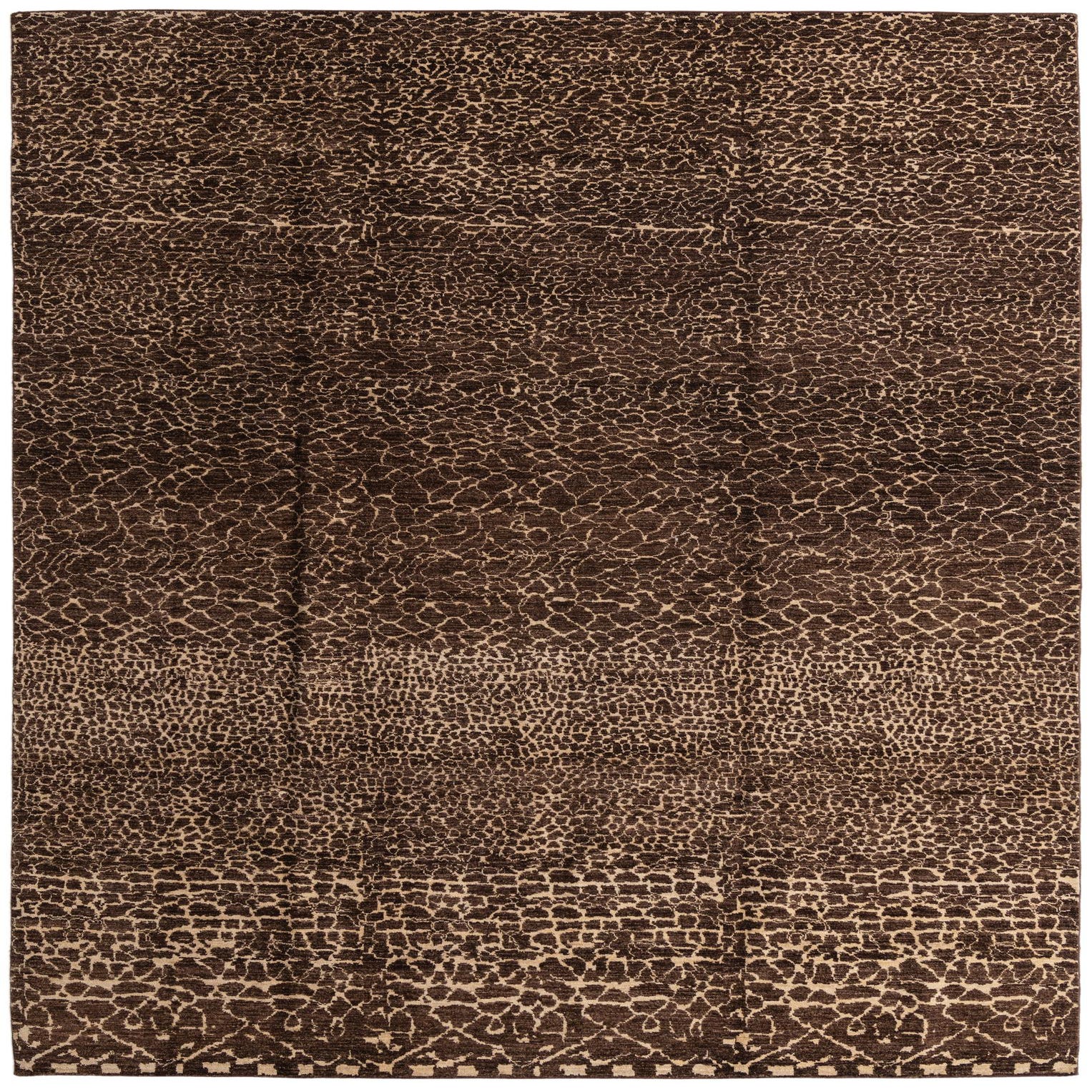A 9x12 rectangular Darya rug with a modern abstract pattern in varying shades of brown and tan.