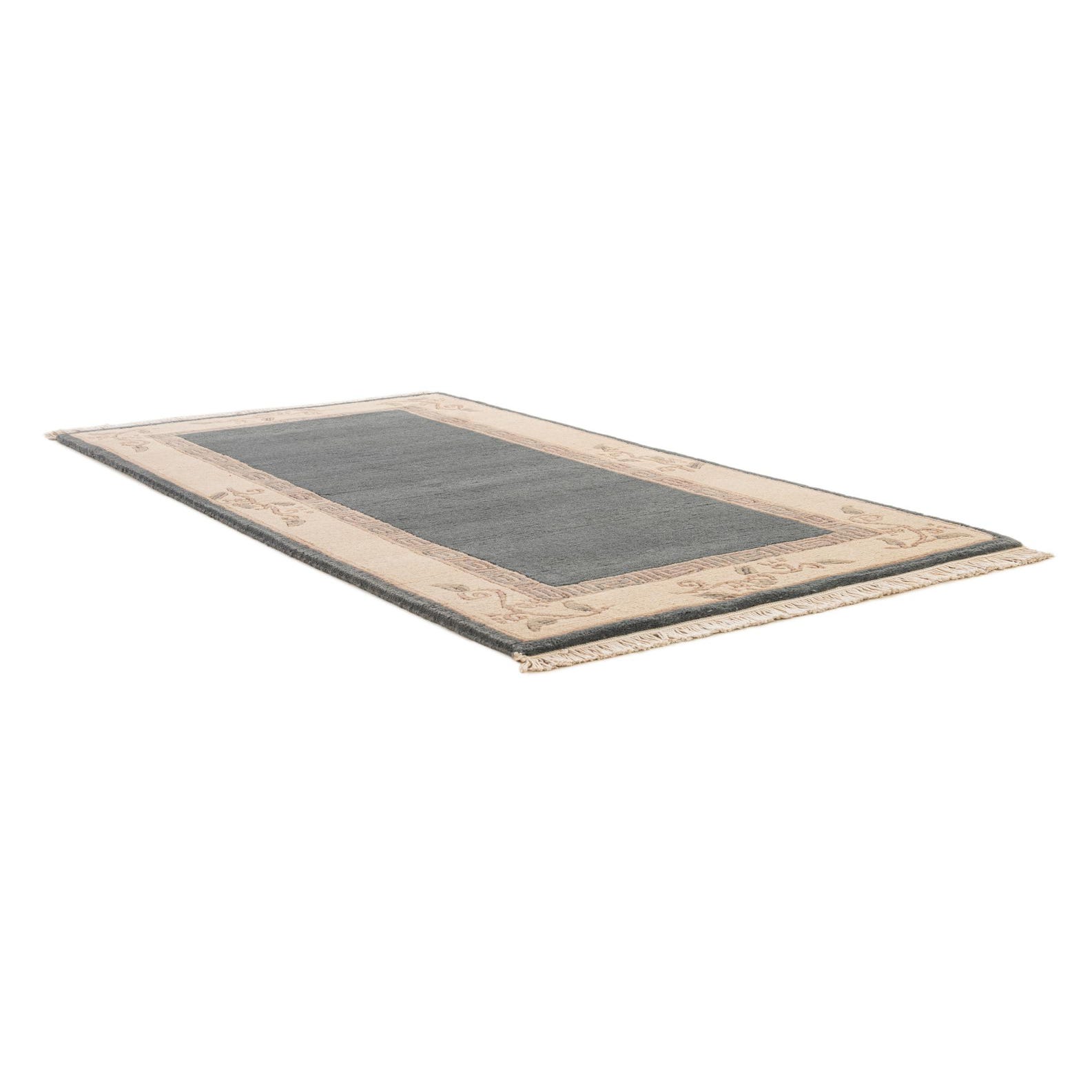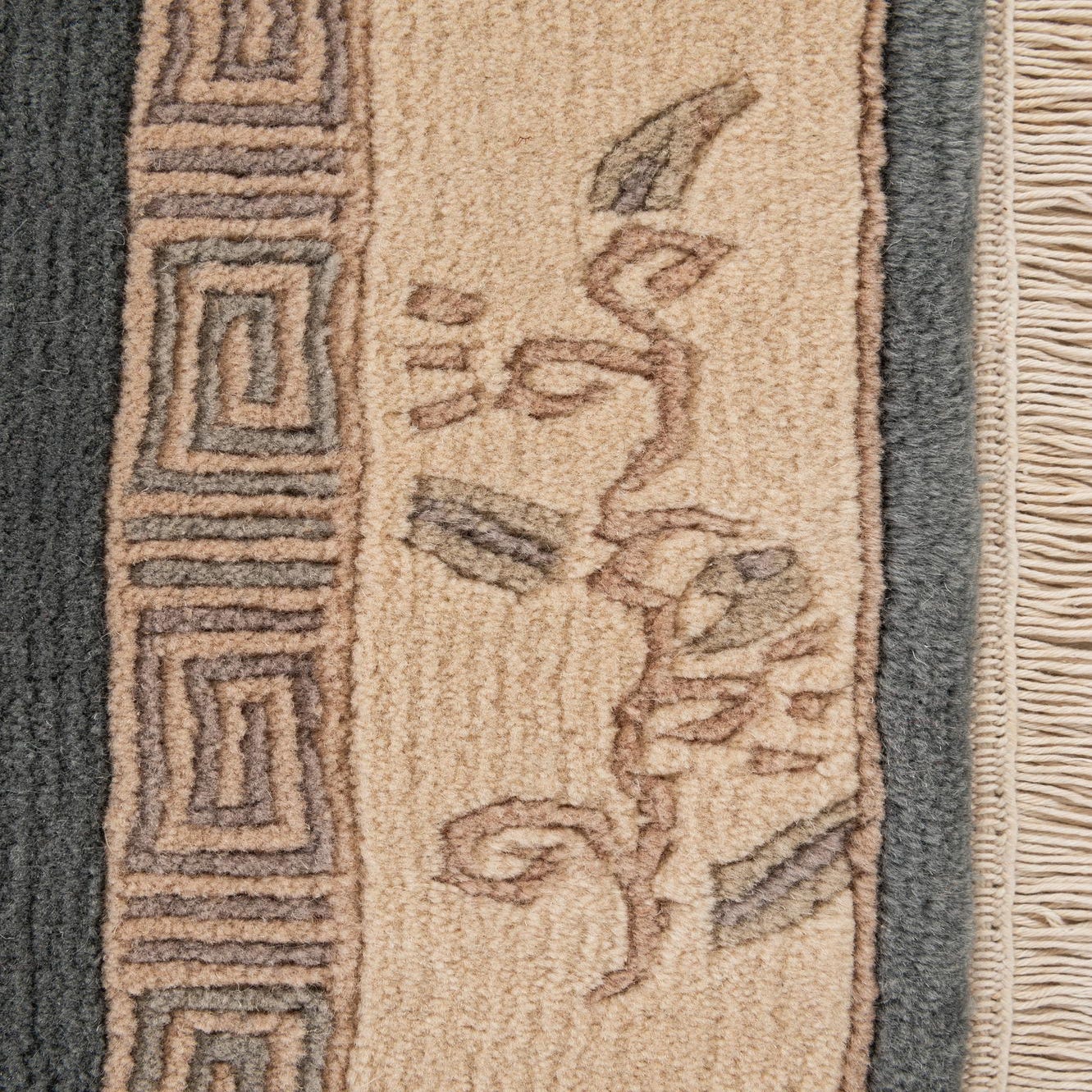 A 3x4 rectangular Tibet collection rug featuring a gray field and a beige border with abstract oriental patterns.