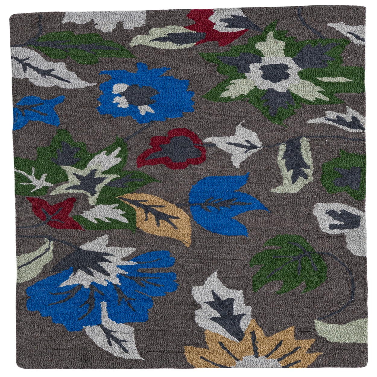Primary color is Dark Gray. Colors in this rug include: Dark Gray, Blue, Ivory, Red, Beige, Olive.